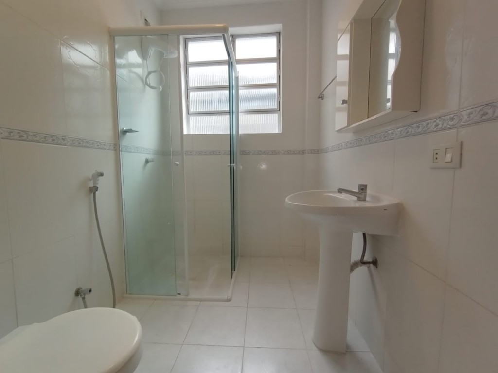 - Banheiro social com box em vidro.