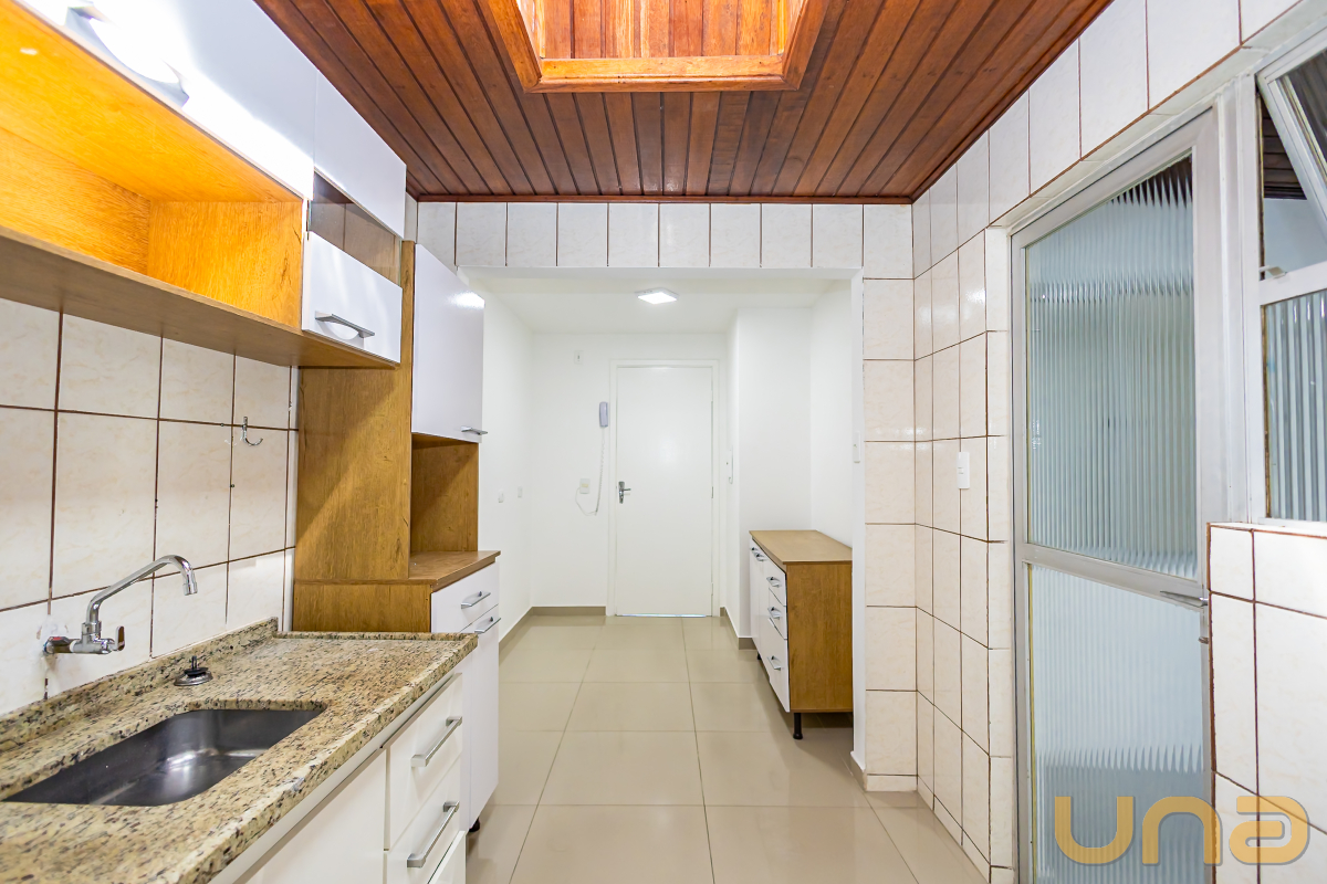 Cozinha com armários e pia com tampo em granito;