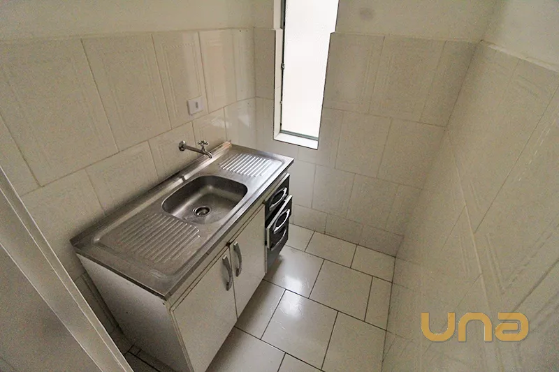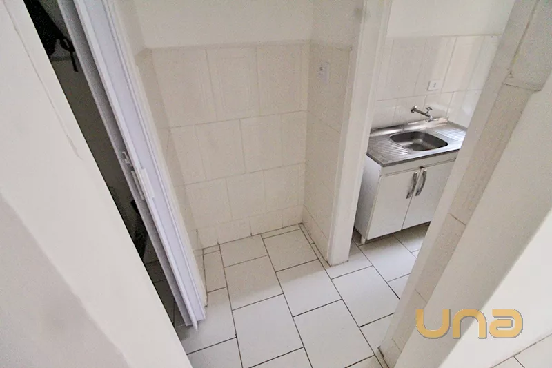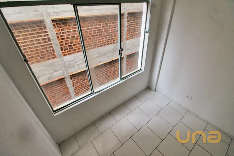 Conjunto Comercial composto por sala em piso cerâmico, com um banheiro e uma copa, equipada com pia em aço inoxidável. Localização na Rua Dr. Muricy, no centro de Curitiba.