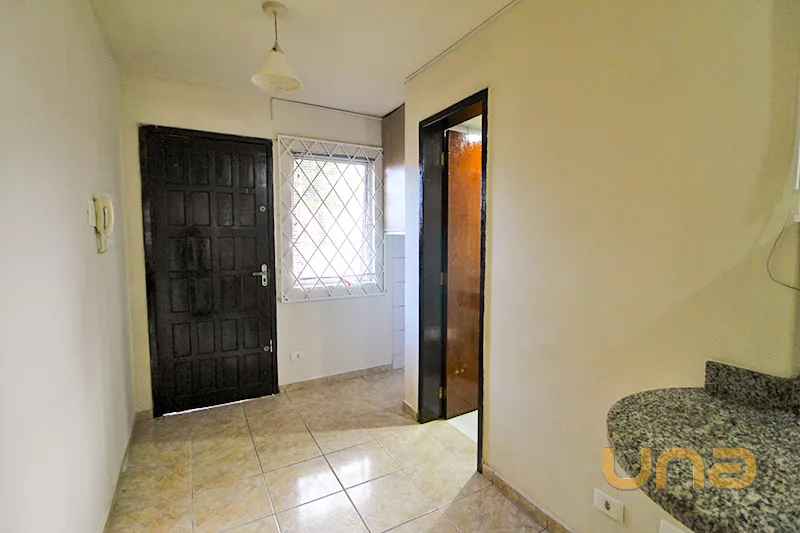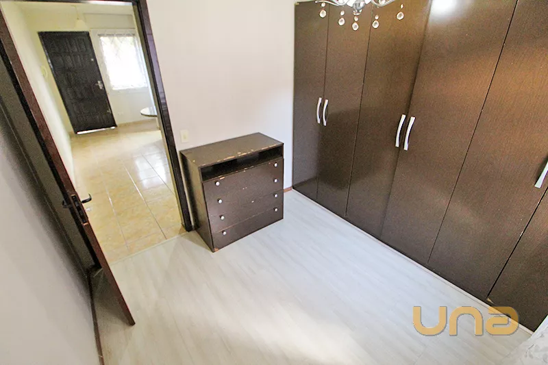 Apartamento térreo de 01 quarto, piso vinílico, armário, cômoda e lustre;