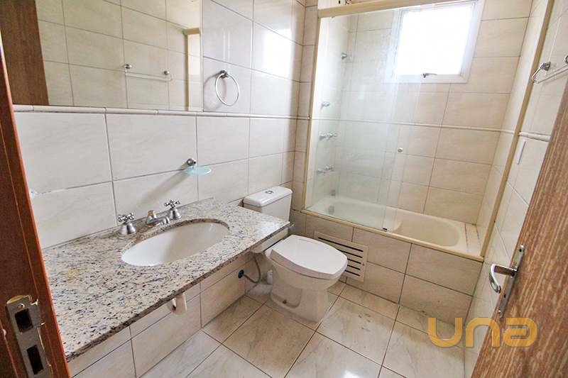 Banheiro com box tipo blindex (banheira da suíte desativada);