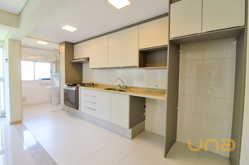 - Cozinha planejada, equipada com: Fogão 5 bocas, Exaustor e Armários;