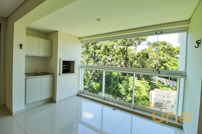 - Varanda gourmet fechada em vidro, com churrasqueira