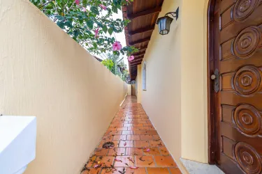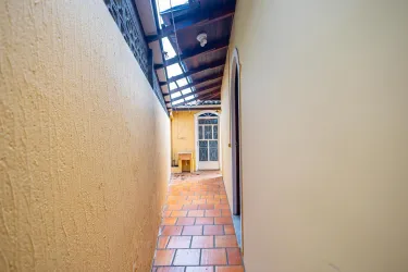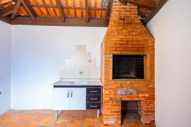 Fundos/lateral contendo área de serviço com tanque, canil e churrasqueira fechada;