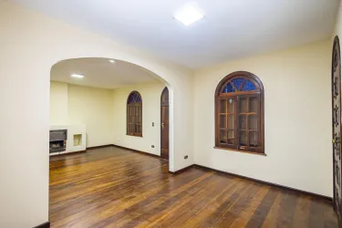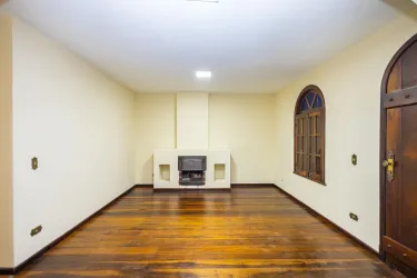Sala ampla para 02 ambientes com sala e ante-sala conjugadas, lareira e sacada;