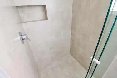 02 Quartos com armário e persiana, sendo 01 suíte com closet, armário e banheiro com chuveiro a gás e box blindex;