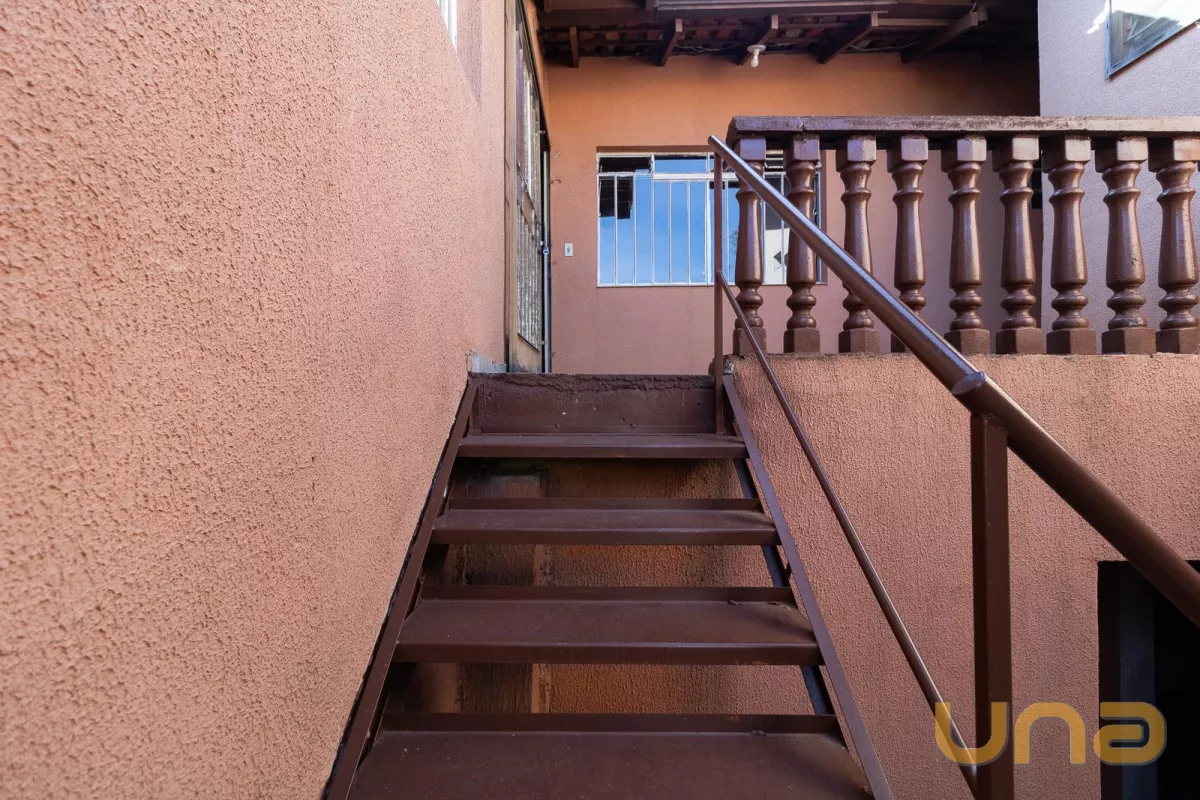 Escada interna com acesso direto à garagem, agregando funcionalidade ao fluxo do imóvel.