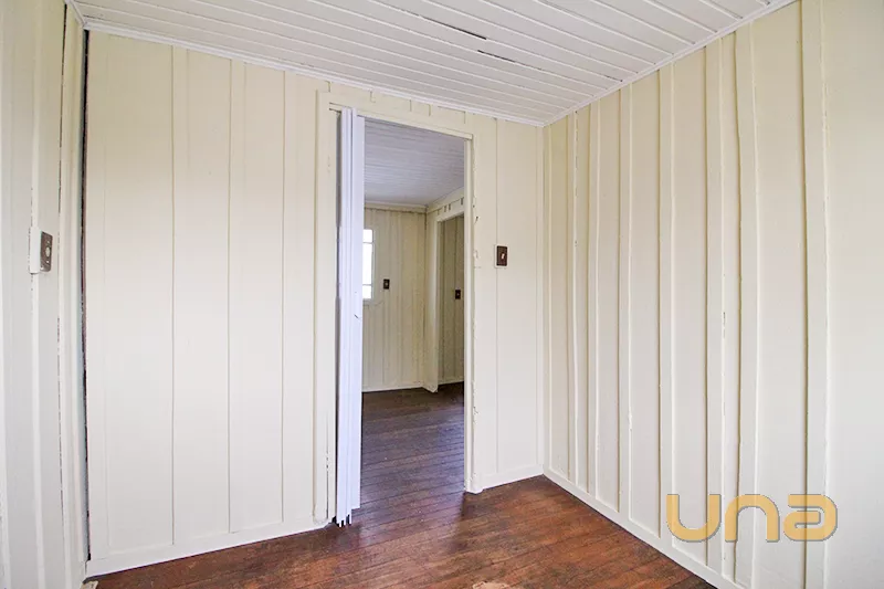 Residência de madeira com 02 quartos, banheiro social, sala com copa anexa, cozinha, piso assoalho de madeira. Edícula com lavanderia e quarto. Amplo pátio com vagas de garagem.
