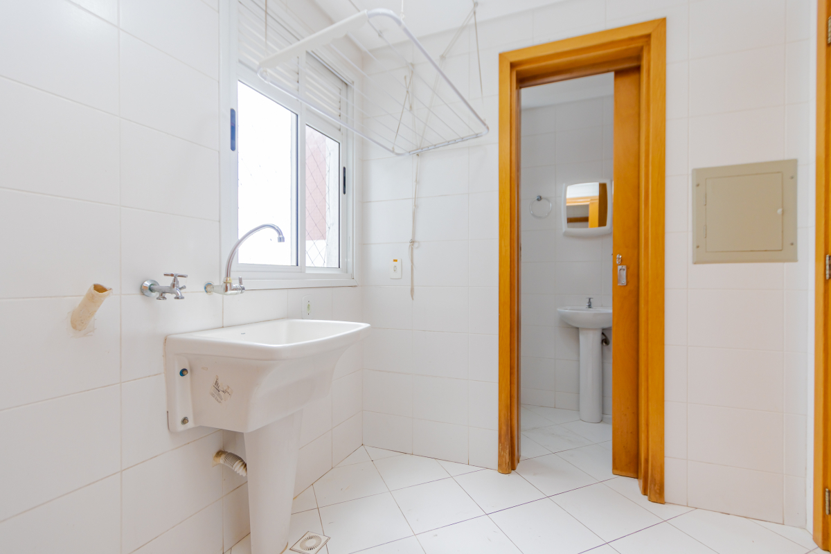 Apartamento com 03 dormitórios sendo 01 suíte com armários, banheiros com box em vidro, lavatórios com armário e espelho, sala para 02 ambientes com sacada fechada, cozinha com móveis planejados, área de serviço com banheiro.
