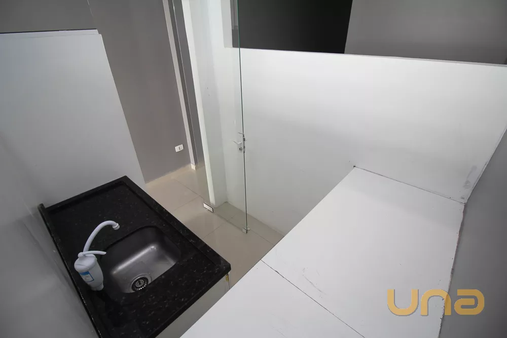 Mezanino com 3 salas com bancadas, lavatórios e armários.