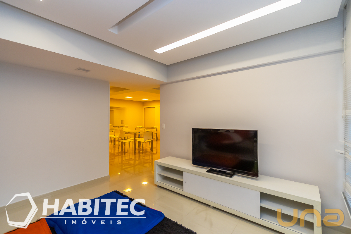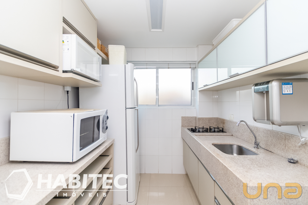 Sala ampla com sacada, 02 dormitórios sendo 1 suíte, cozinha americana com armários, cooktop, coifa, área de serviço, piso laminado.