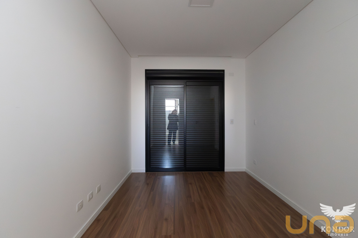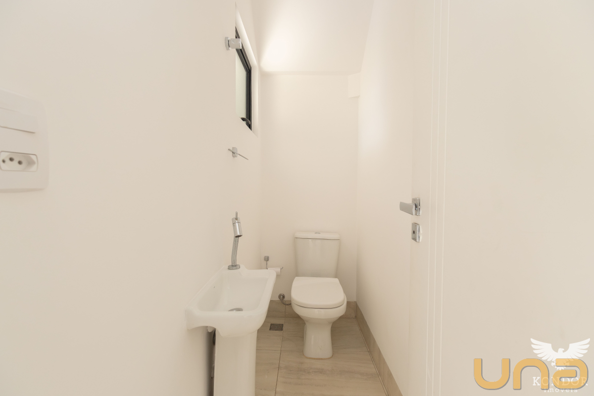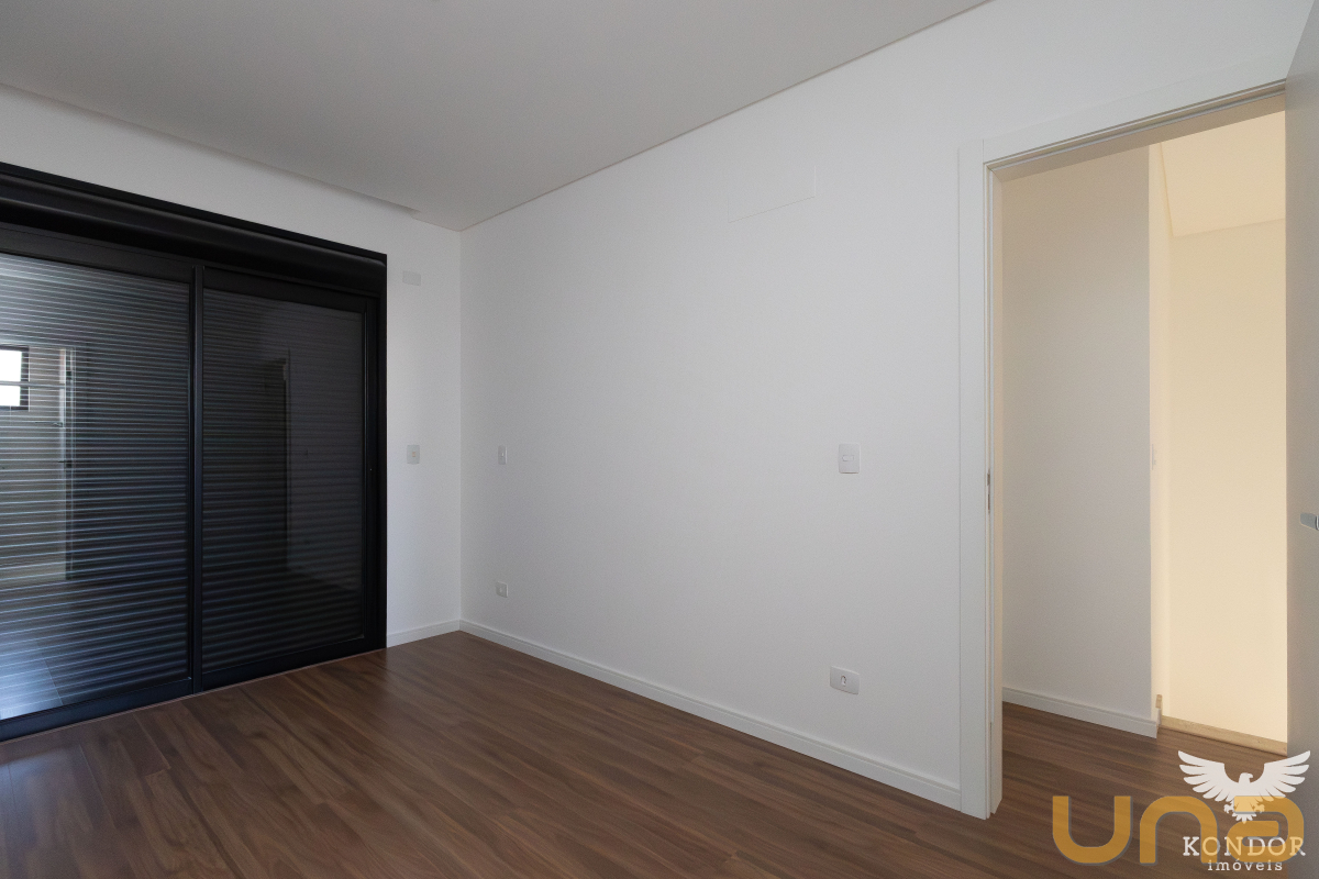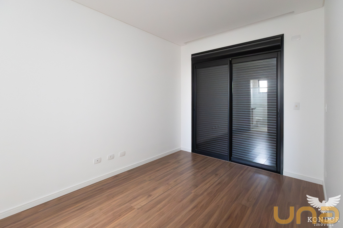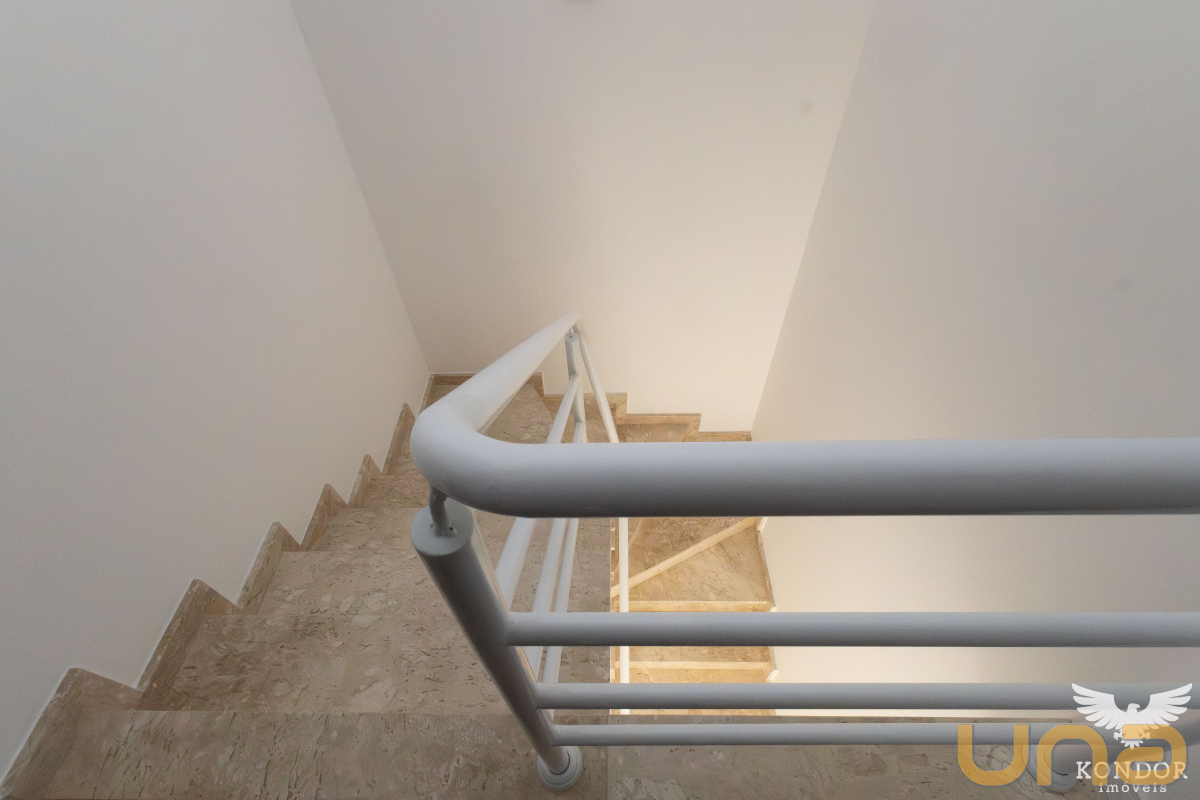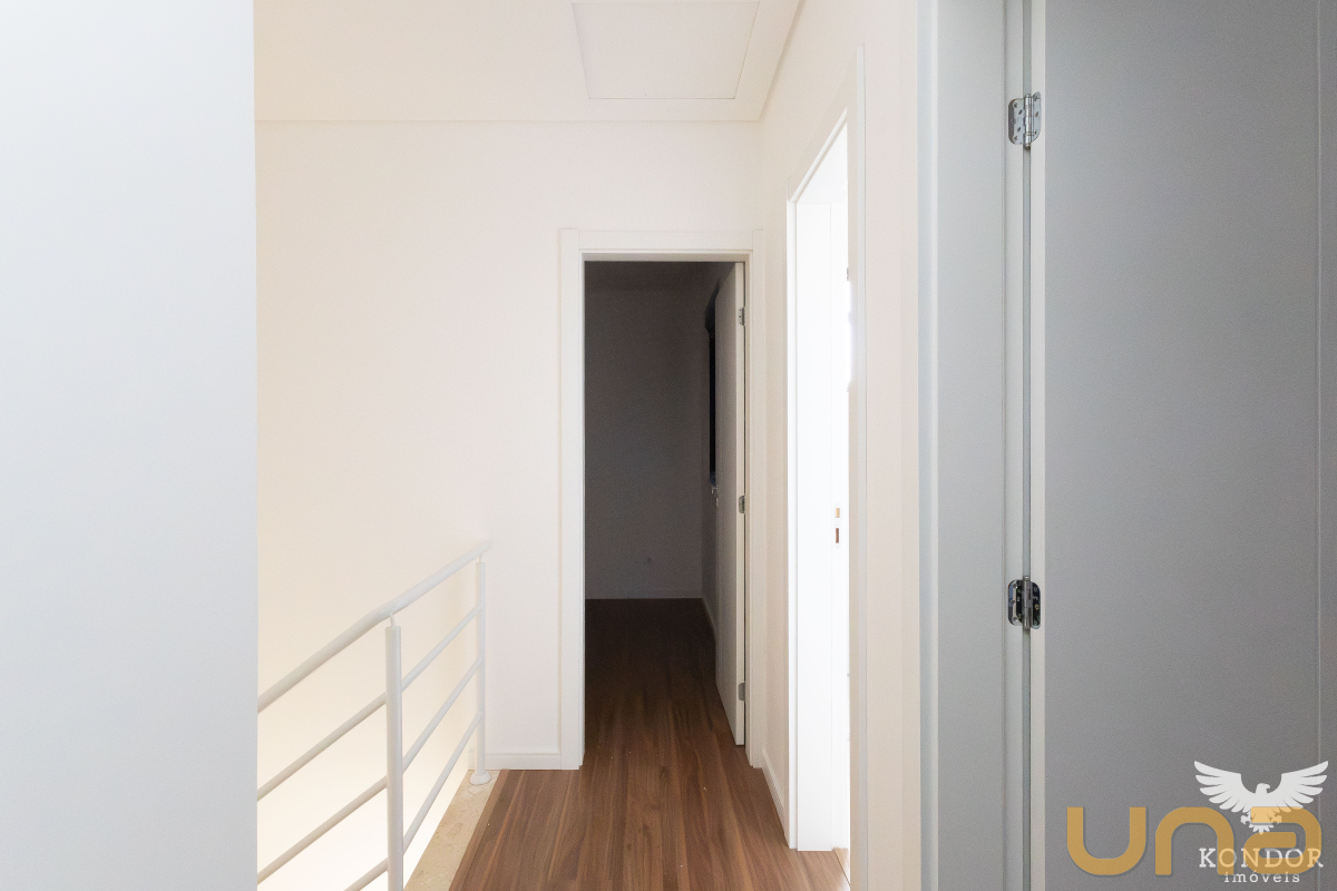 Pavimento superior com três quartos sendo um suíte, quartos com venezianas automatizadas, piso no pavimento superior com laminado, imóvel com hidráulica pronta para ar condicionado nos quartos e na sala, churrasqueira, uma vaga de garagem e uma vaga de estacionamento.
