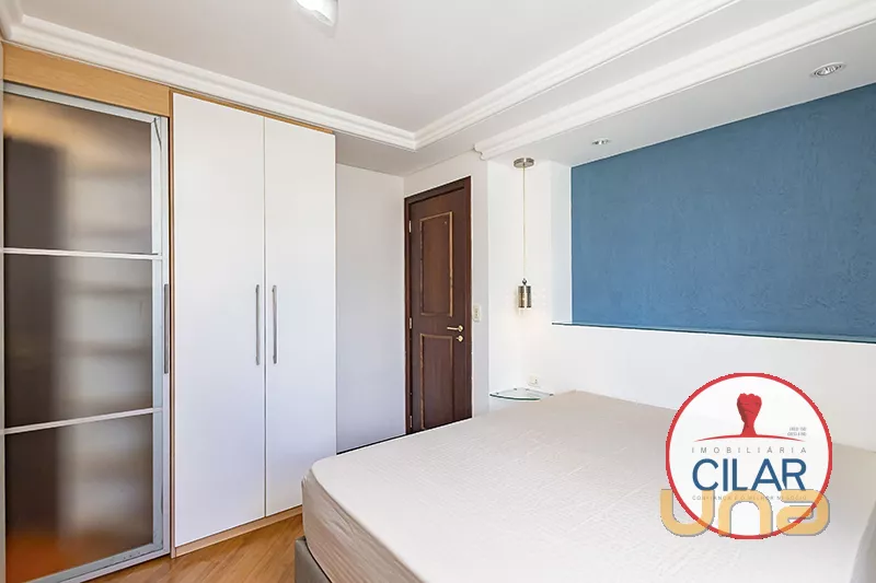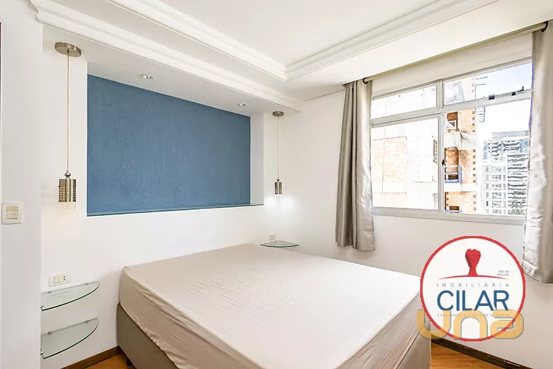 Apartamento mobiliado de 02 quartos com armários, piso laminado, sendo 01 suíte com box blindex e hidromassagem;