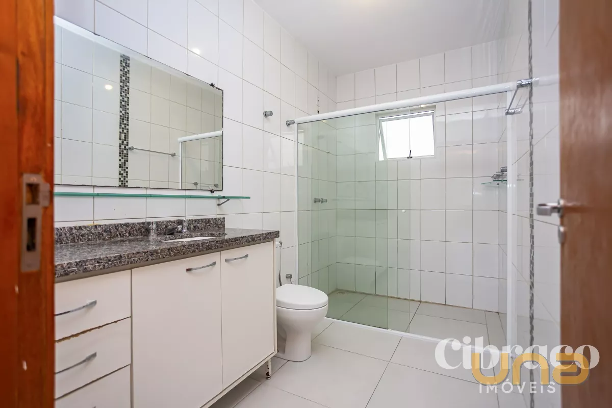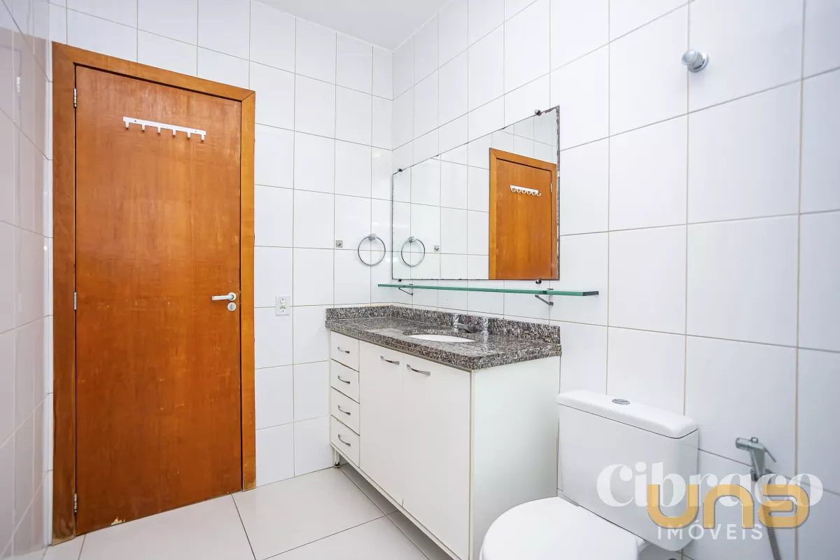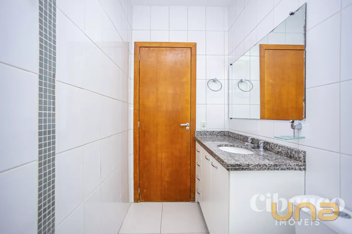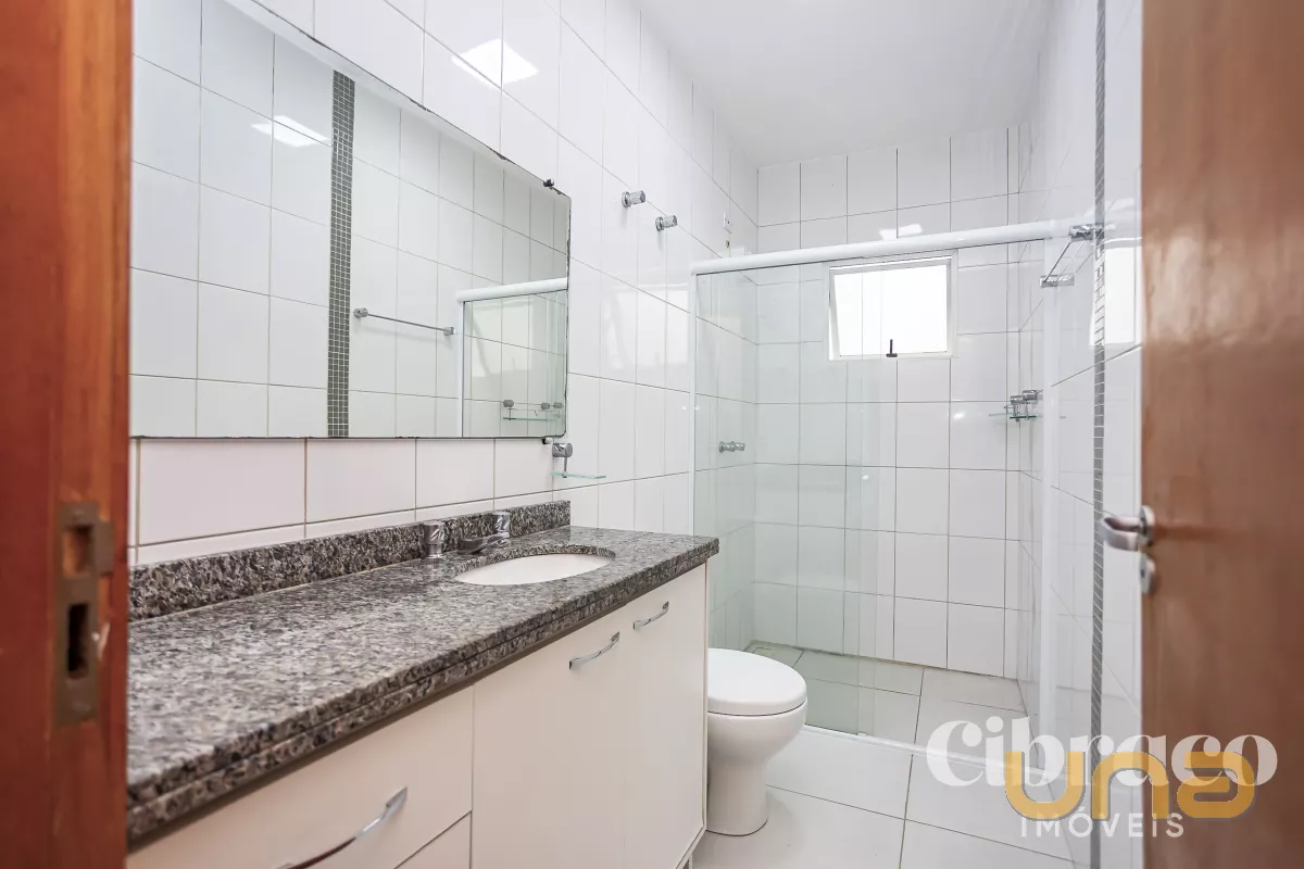 Piso superior com 3 quartos, sendo 1 suíte com sacada. Banheiro social com box blindex.