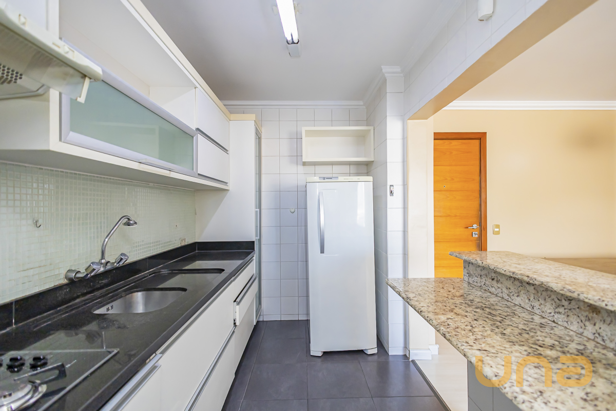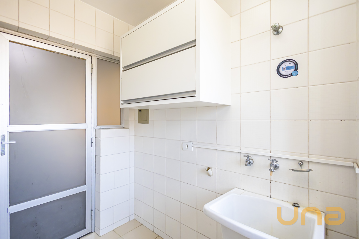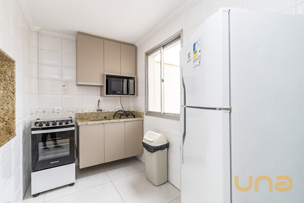 Mobiliado, sala para 02 ambientes com sofá, mesa, 02 dormitórios sendo 01 suíte, ambos com armários e cama box de casal, cozinha com armários, geladeira, fogão e depurador, área de serviço com armários e banheiro.