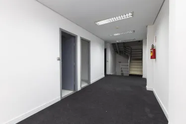 Primeiro andar estruturado com três salas privativas para suporte administrativo ou consultórios