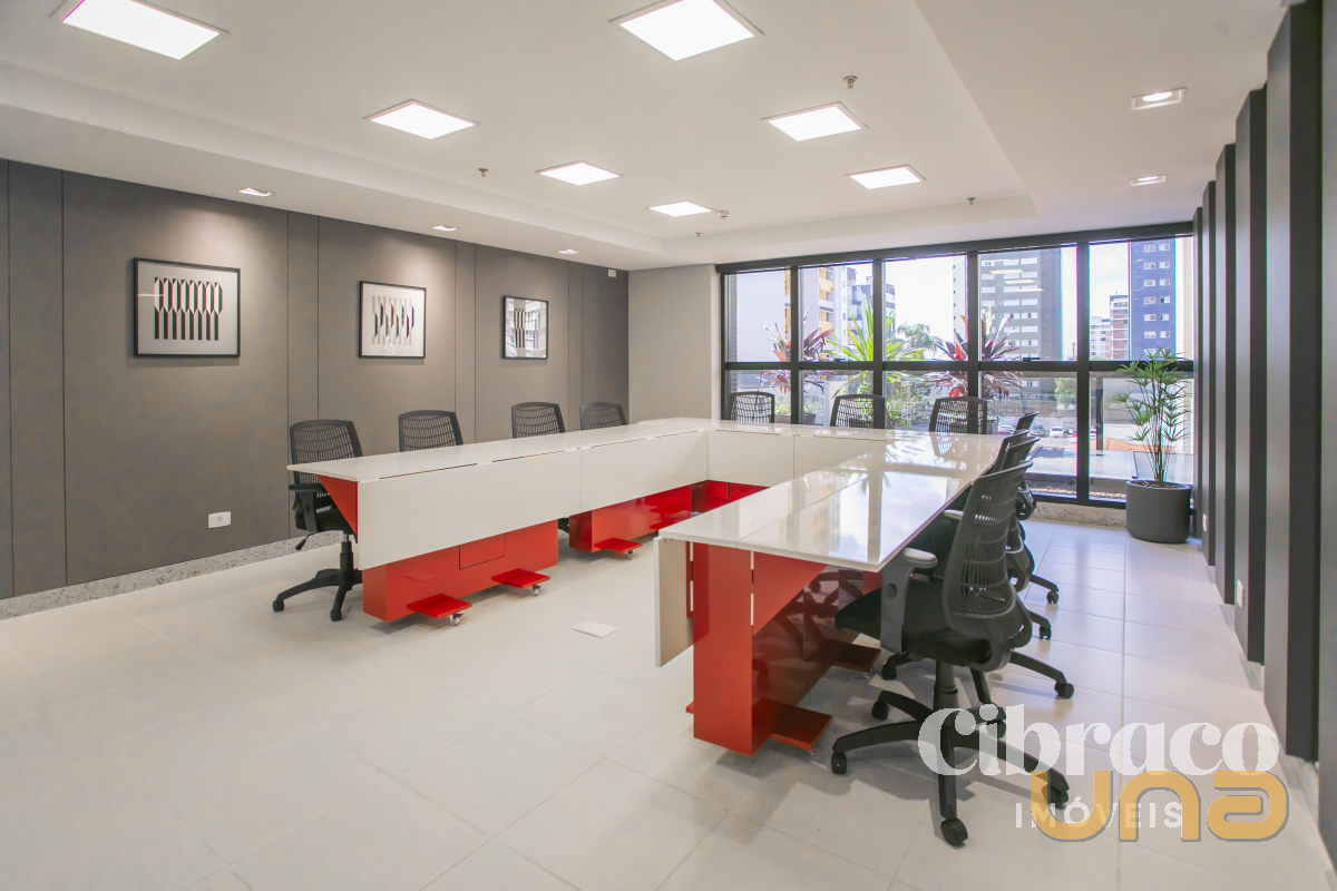 O edifício oferece recepção decorada, 4 elevadores da marca Otis, sendo um enclausurado, um banheiro PNE por andar, sistema de sprinklers em todos os conjuntos, 2 salas de reuniões coletivas e estacionamento rotativo.