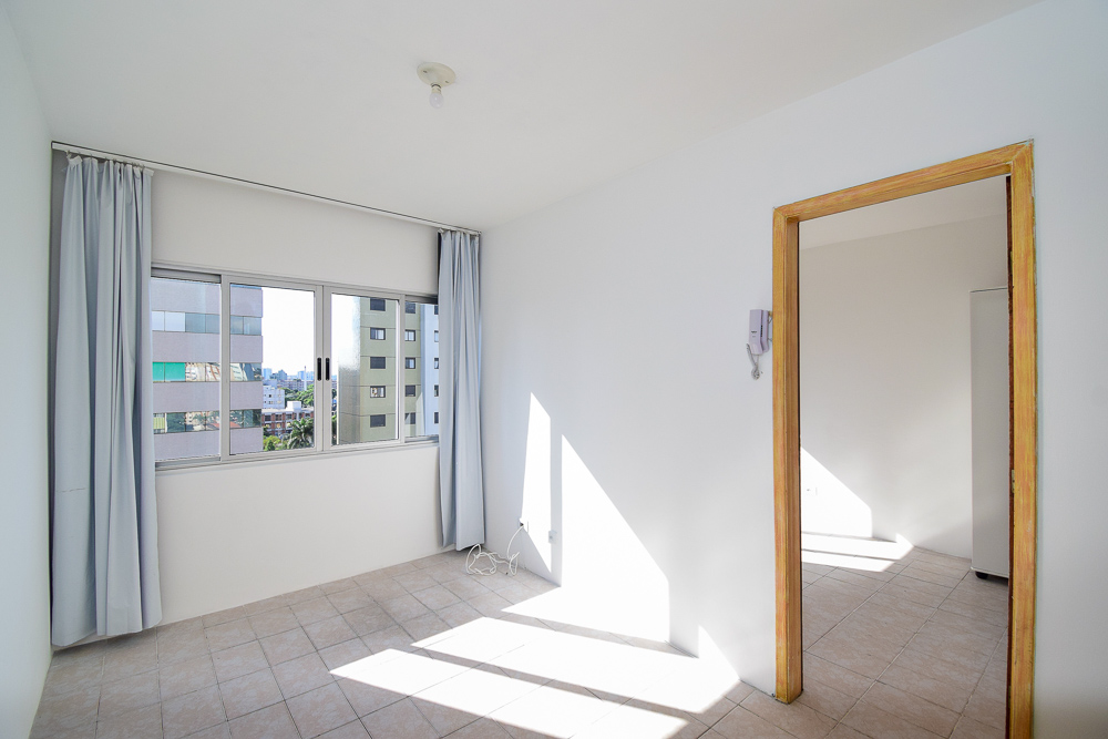 Detalhes: Apartamento com sala, cozinha, 1 dormitório e 1 banheiro. Possui esquadrias de alumínio novas e piso em cerâmica.