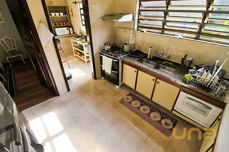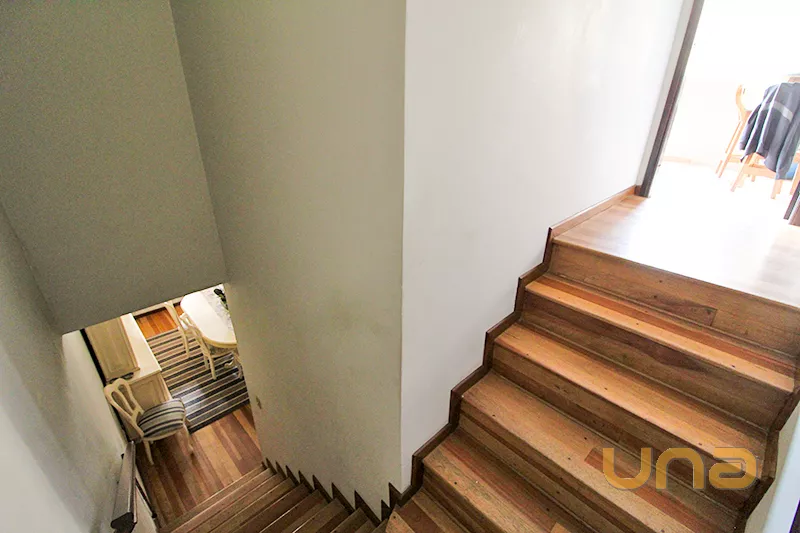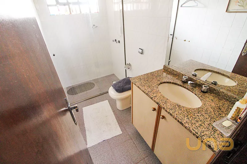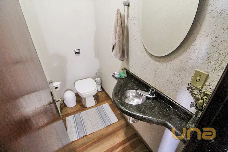 - Piso térreo: 1 sala para 2 ambientes com bar; 1 sala de jantar; 1 copa; 1 cozinha com armário e pia tampo granito; 2 lavabos;