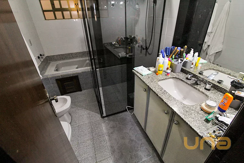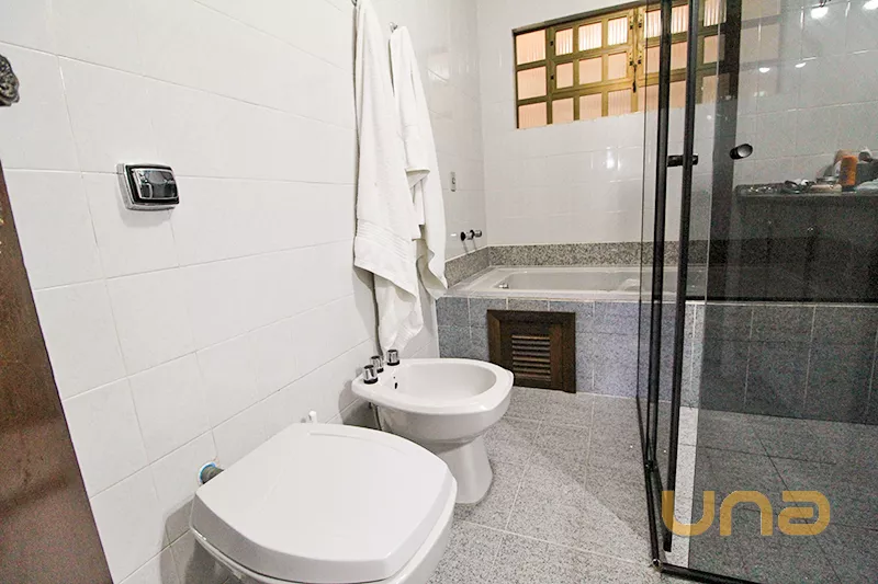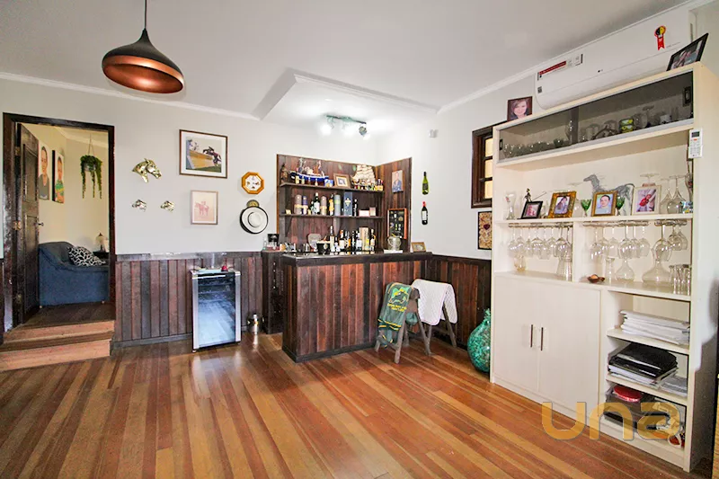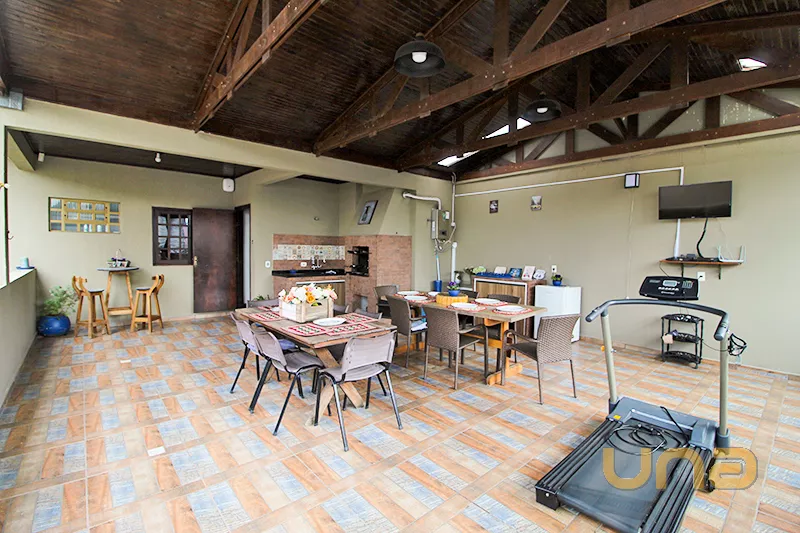 - Parte superior: amplo salão semi aberto com churrasqueira; 3 quartos sendo 1 suite com hidromassagem e closet com armário; 1 quarto com ar-condicionado; 1 quarto com sacada; 1 banheiro social ;