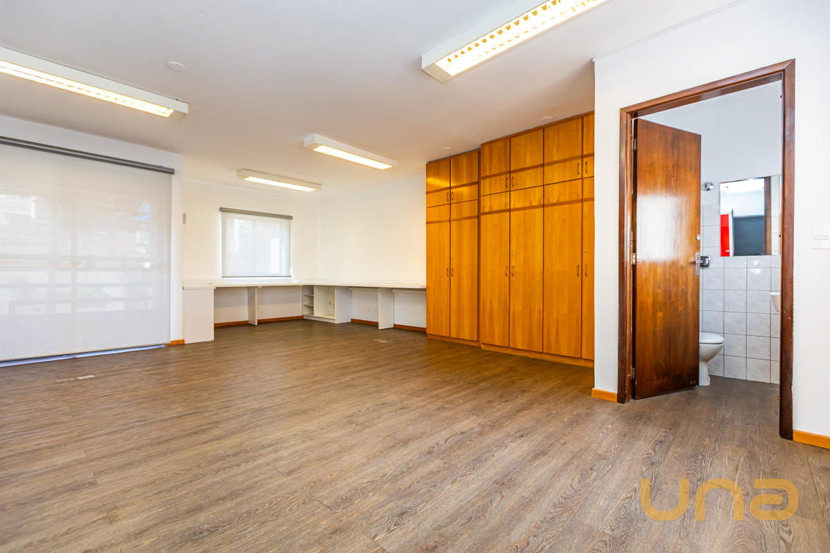 Sala com lavabo e armários;