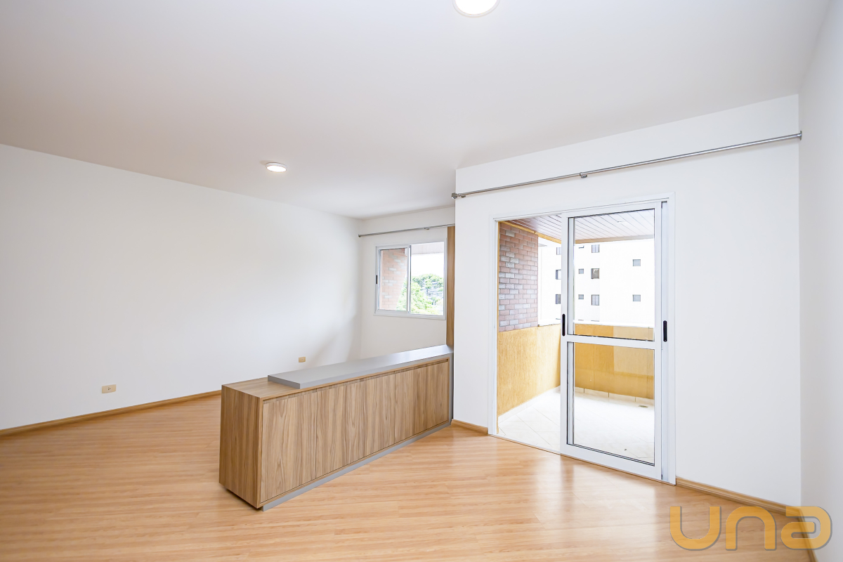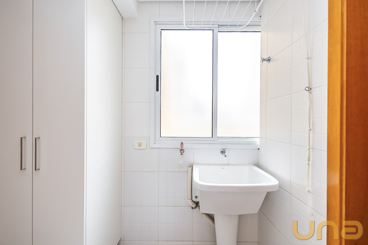 Sala para 02 ambientes com sacada ampla, 03 dormitórios sendo 01 suite com armário, painel e cabeceira e 01 quarto com armário, Cozinha com armários, Área de serviço e banheiro de empregada, luminárias e piso laminado.