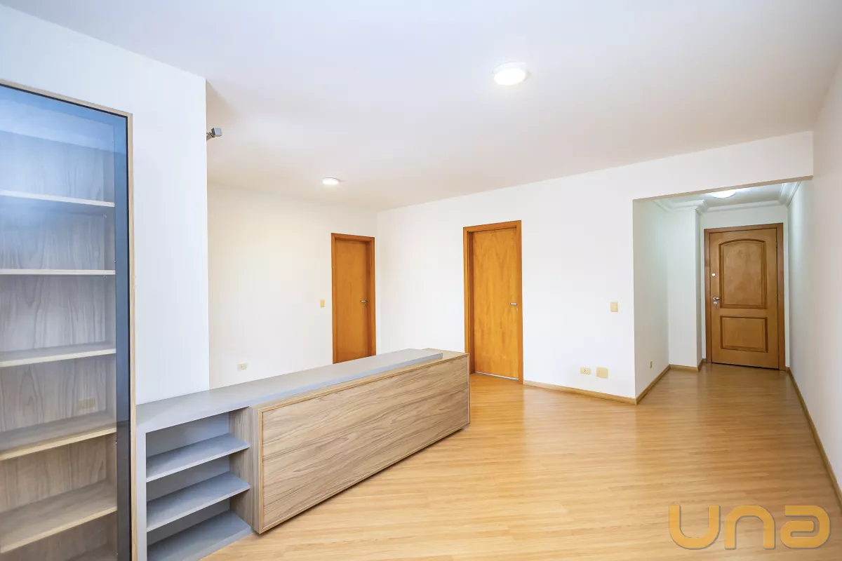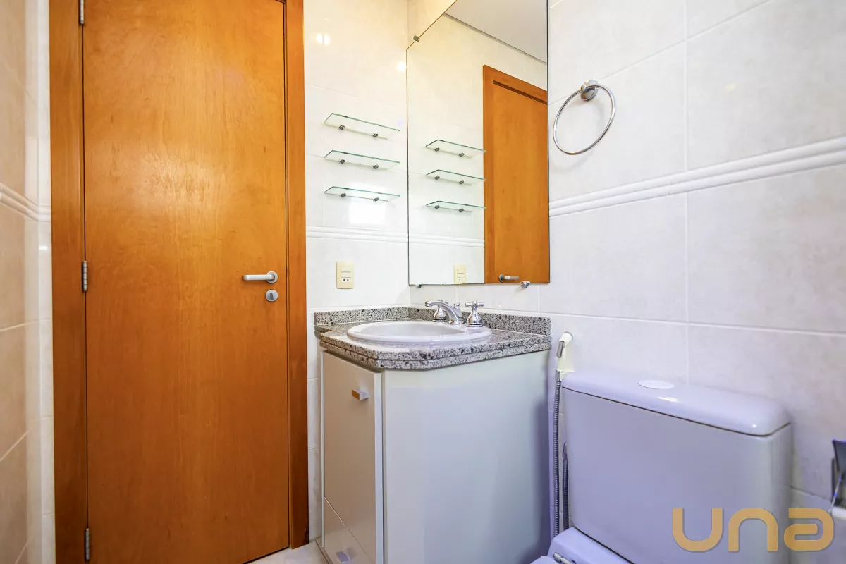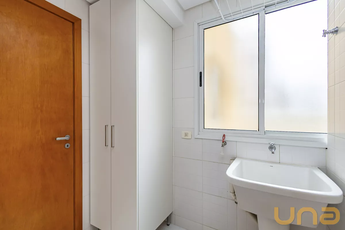 Sala para 02 ambientes com sacada ampla, 03 dormitórios sendo 01 suite com armário, painel e cabeceira e 01 quarto com armário, Cozinha com armários, Área de serviço e banheiro de empregada, luminárias e piso laminado.