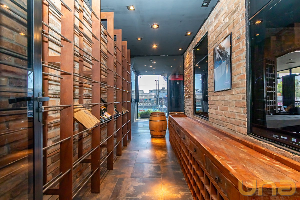 São dois salões amplos climatizados com adega e banheiros feminino e masculino.
