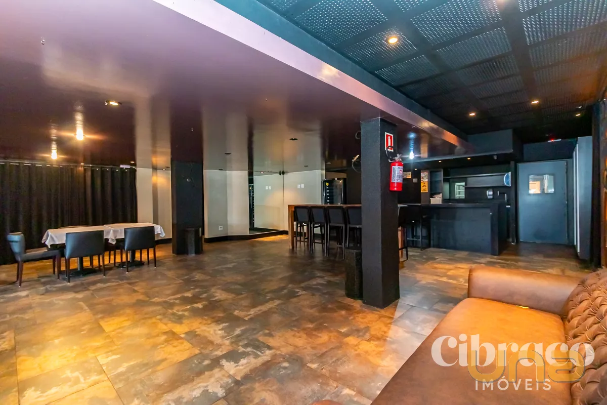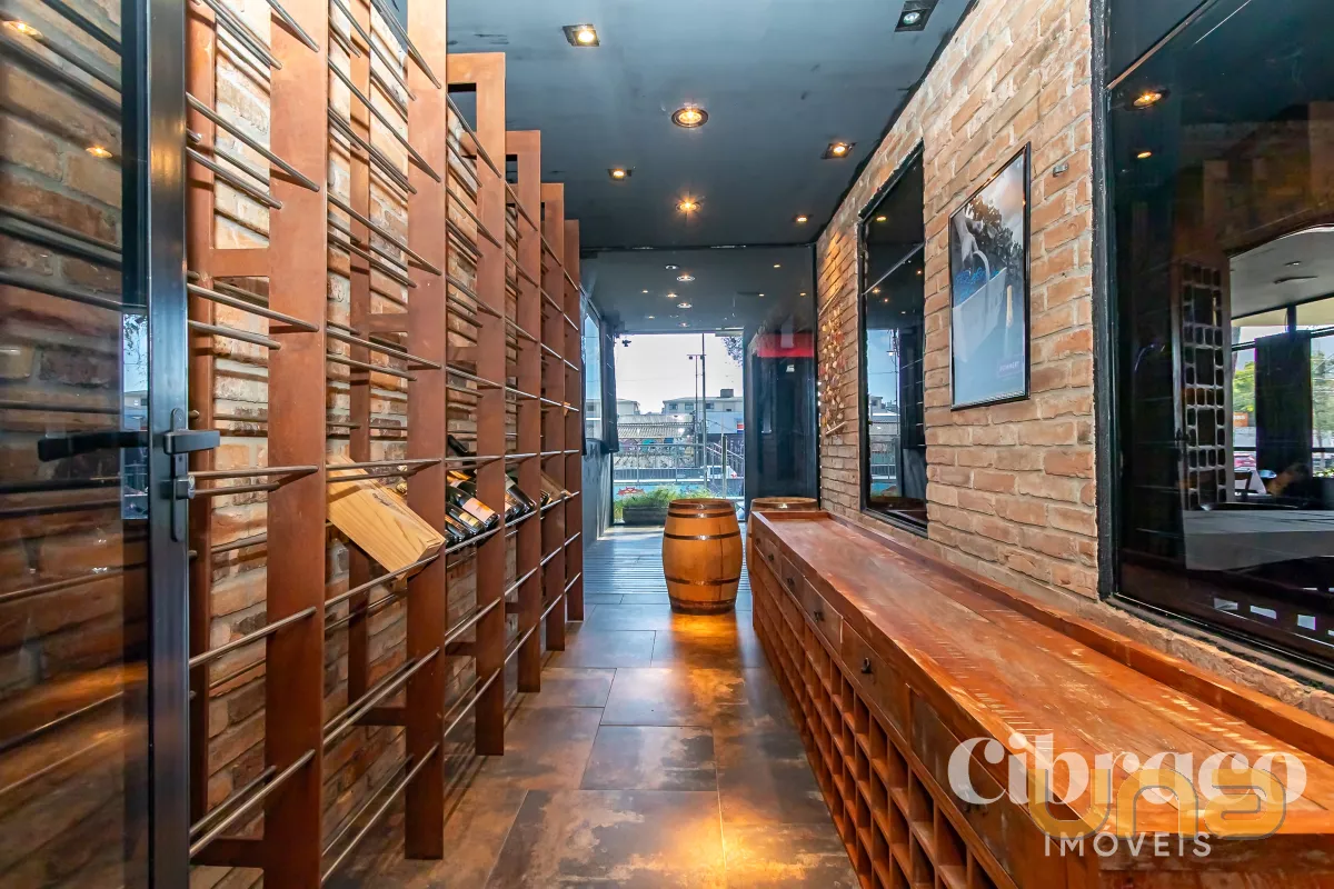 São dois salões amplos climatizados com adega e banheiros feminino e masculino.