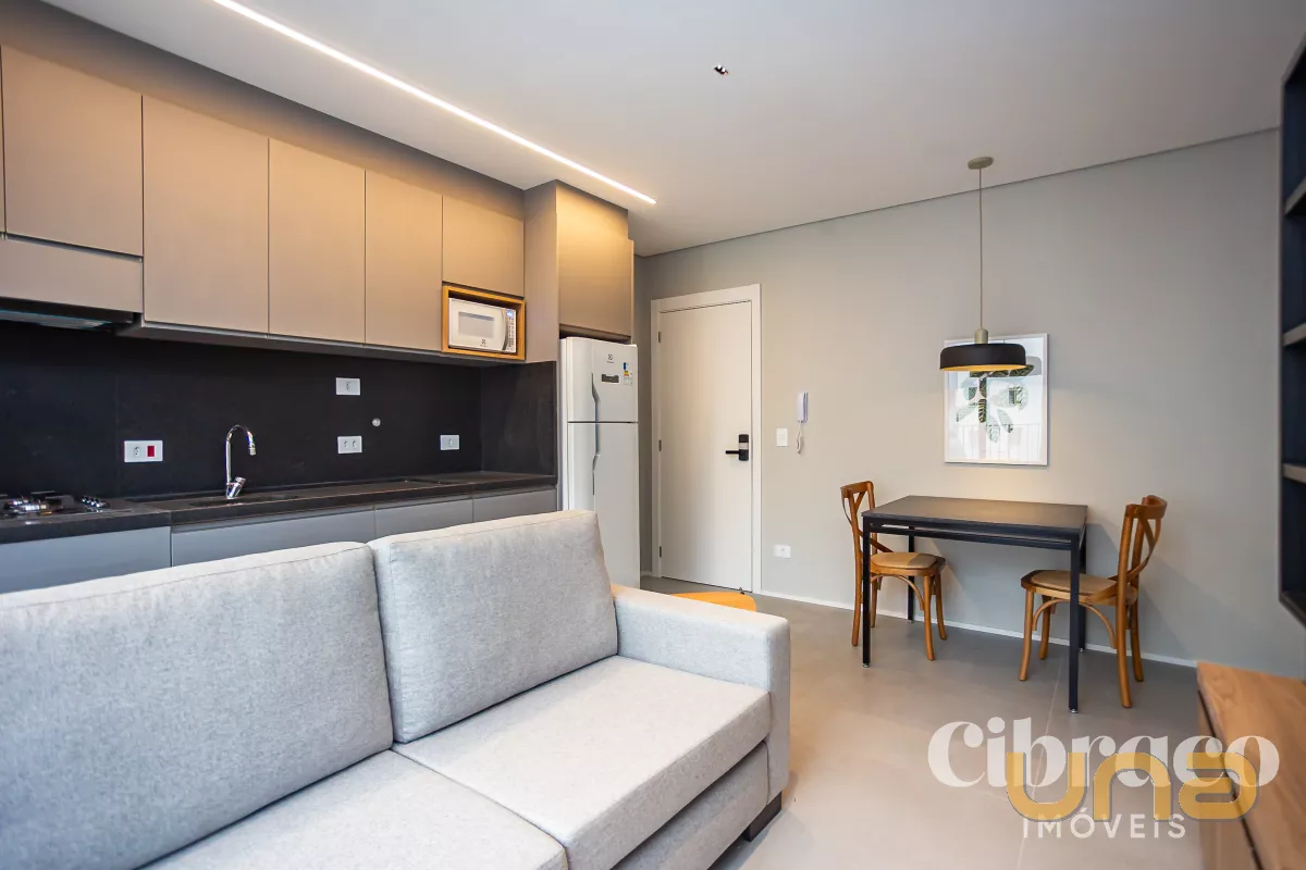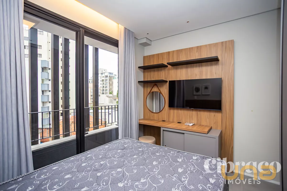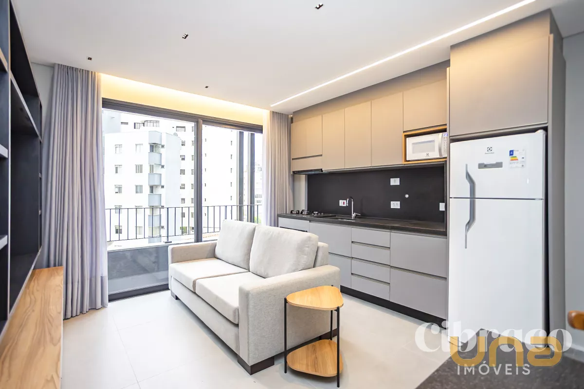 Apartamento mobiliado para alugar com 1 quarto no Batel – Edifício Temple