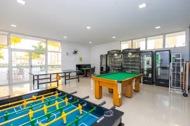 Condomínio com portaria 24 horas, academia, piscina, quadra esportiva, salão de festas, playground, salão de jogos e espaço gourmet.