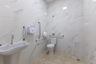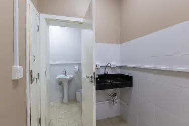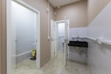 02 Banheiros bem distribuídos garantindo funcionalidade e plena acessibilidade para clientes e equipe