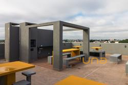 Terraço com churrasqueira, pensado para encontros e lazer ao ar livre.