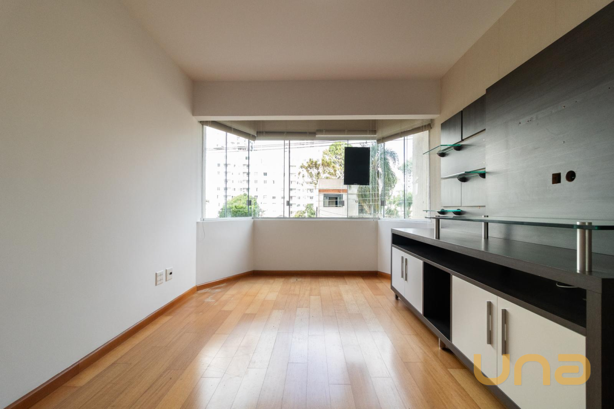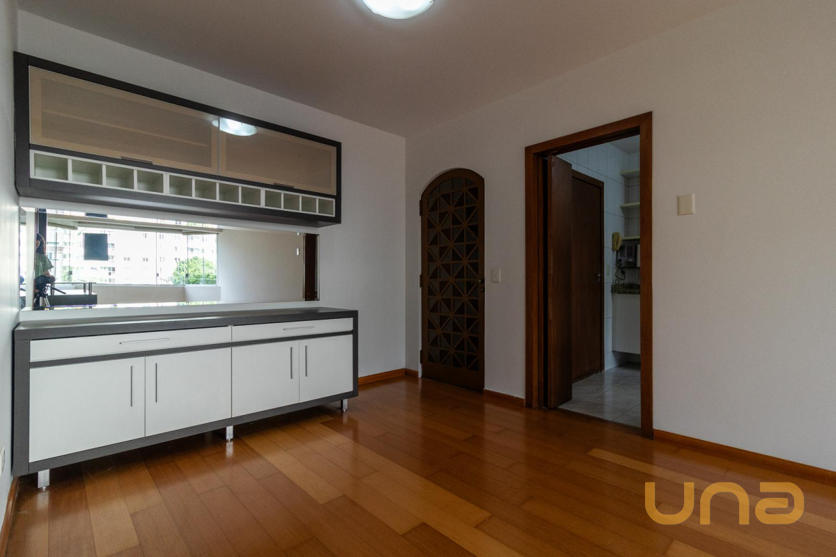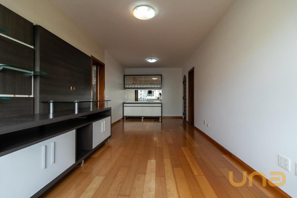 Sala ampla para 02 ambientes, com excelente distribuição de espaço, painel para TV, rack, espelho e balcão. Piso laminado e pintura nova reforçam a sensação de ambiente moderno e acolhedor.