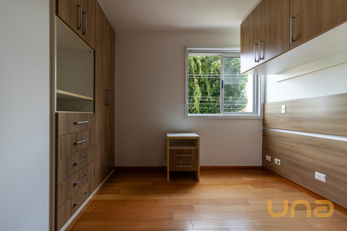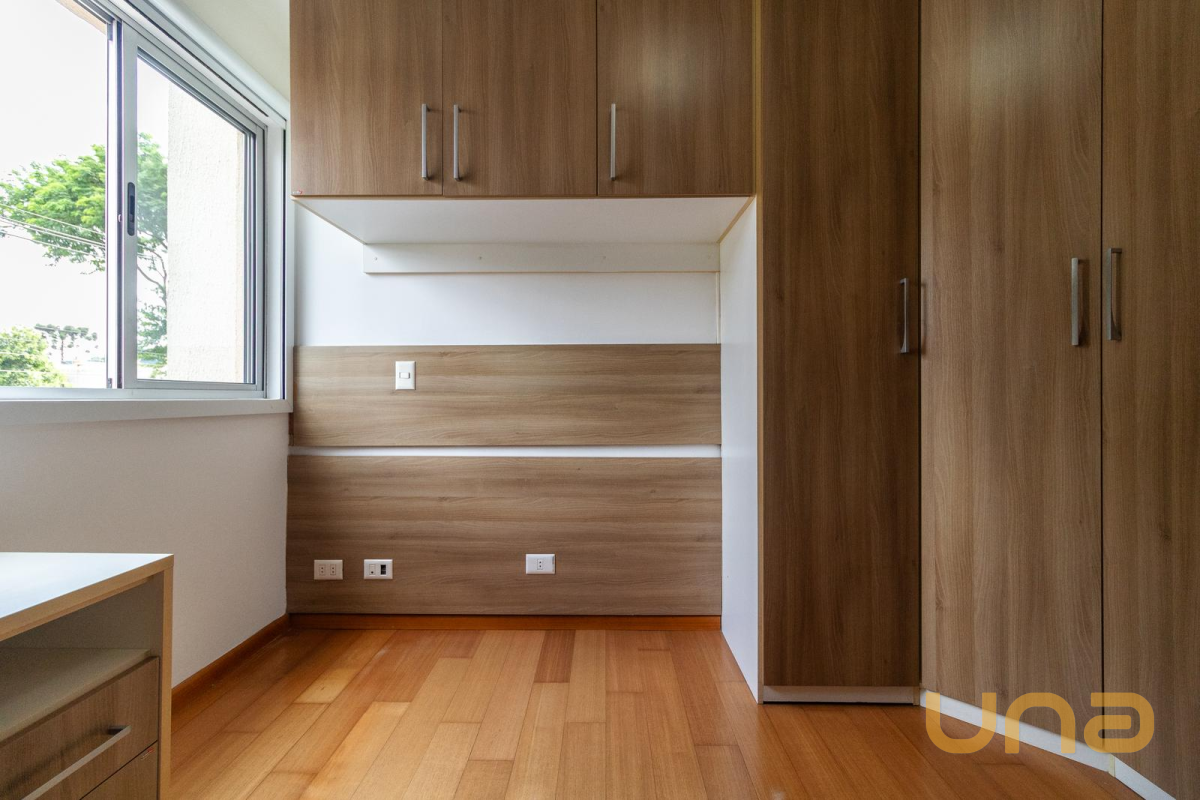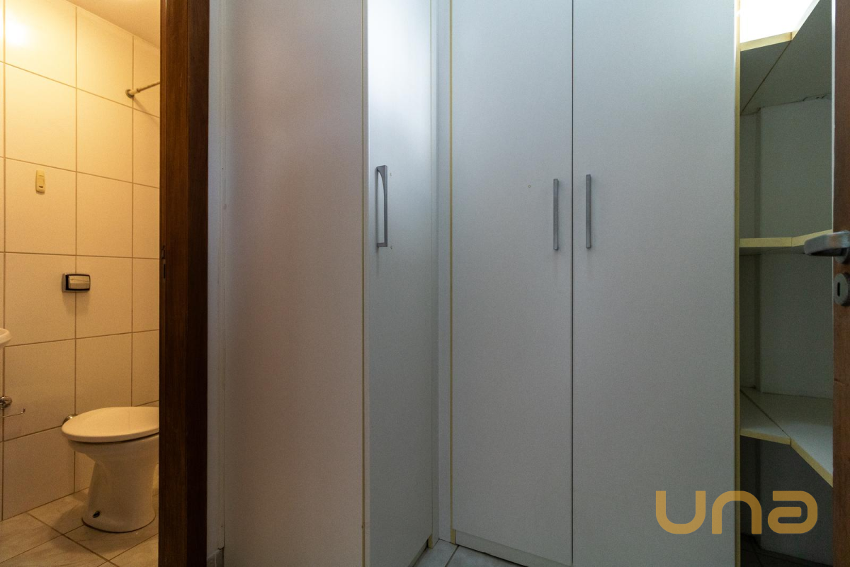 03 Quartos, sendo 01 suíte. Todos contam com armários planejados, cortinas persianas e piso em madeira, proporcionando conforto térmico, organização e um ambiente aconchegante.