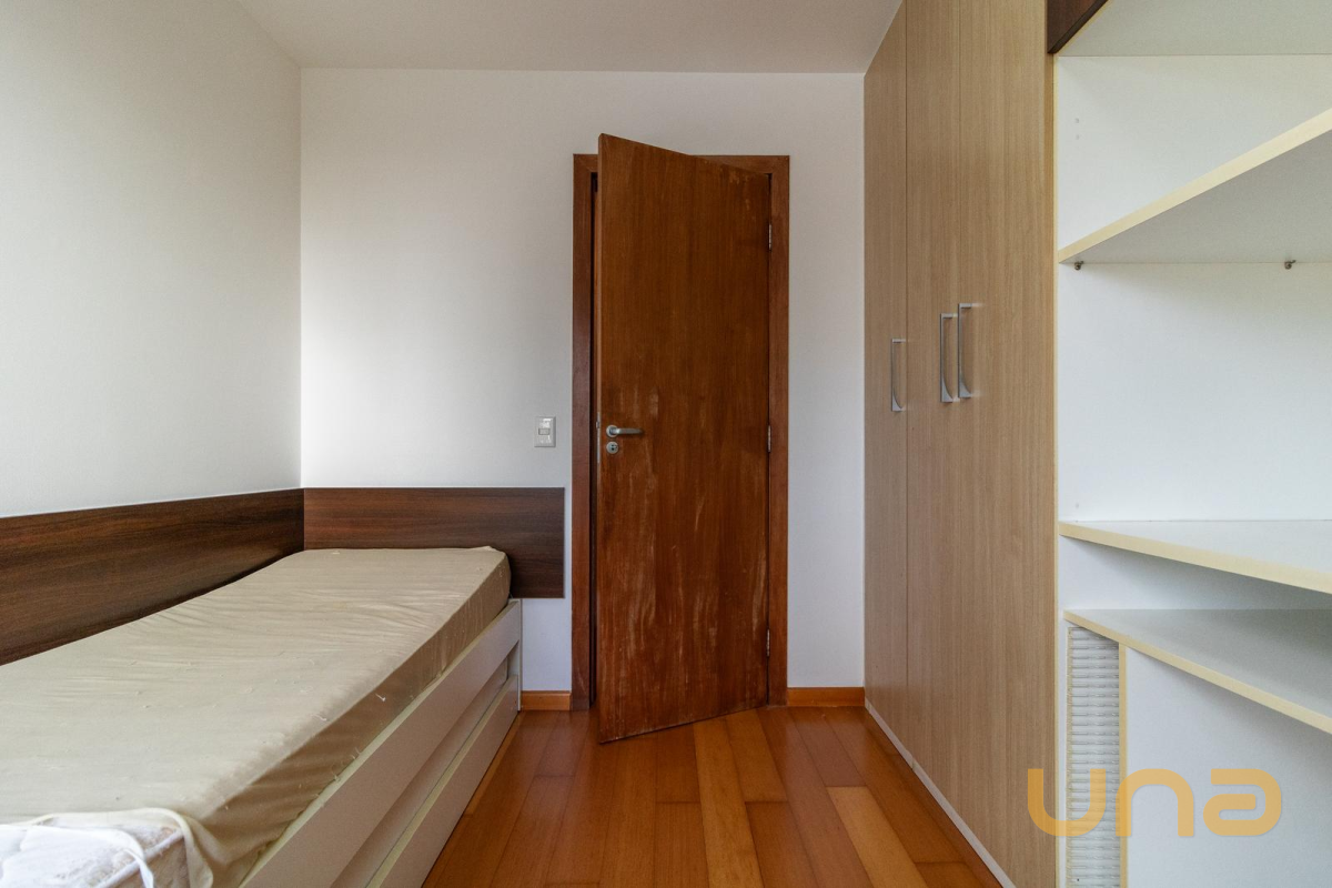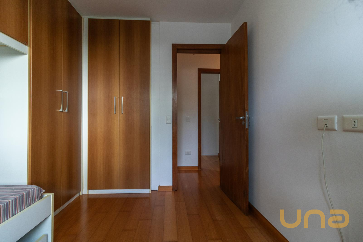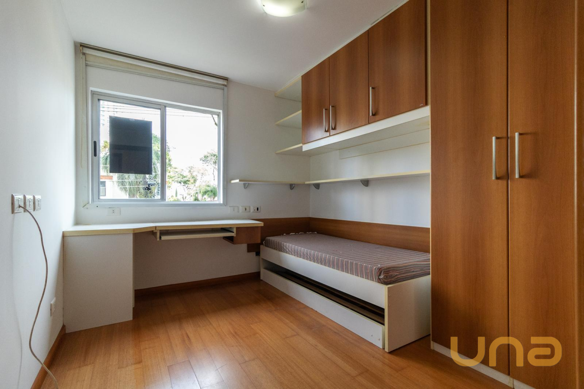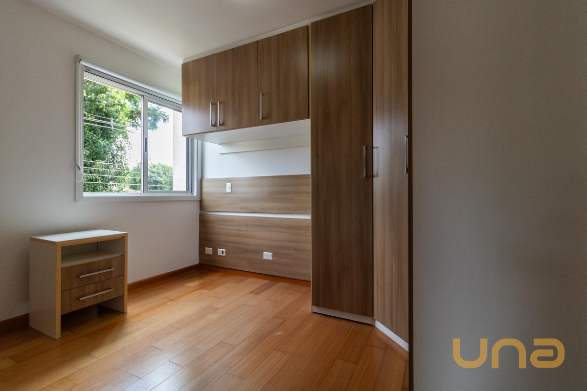03 Quartos, sendo 01 suíte. Todos contam com armários planejados, cortinas persianas e piso em madeira, proporcionando conforto térmico, organização e um ambiente aconchegante.