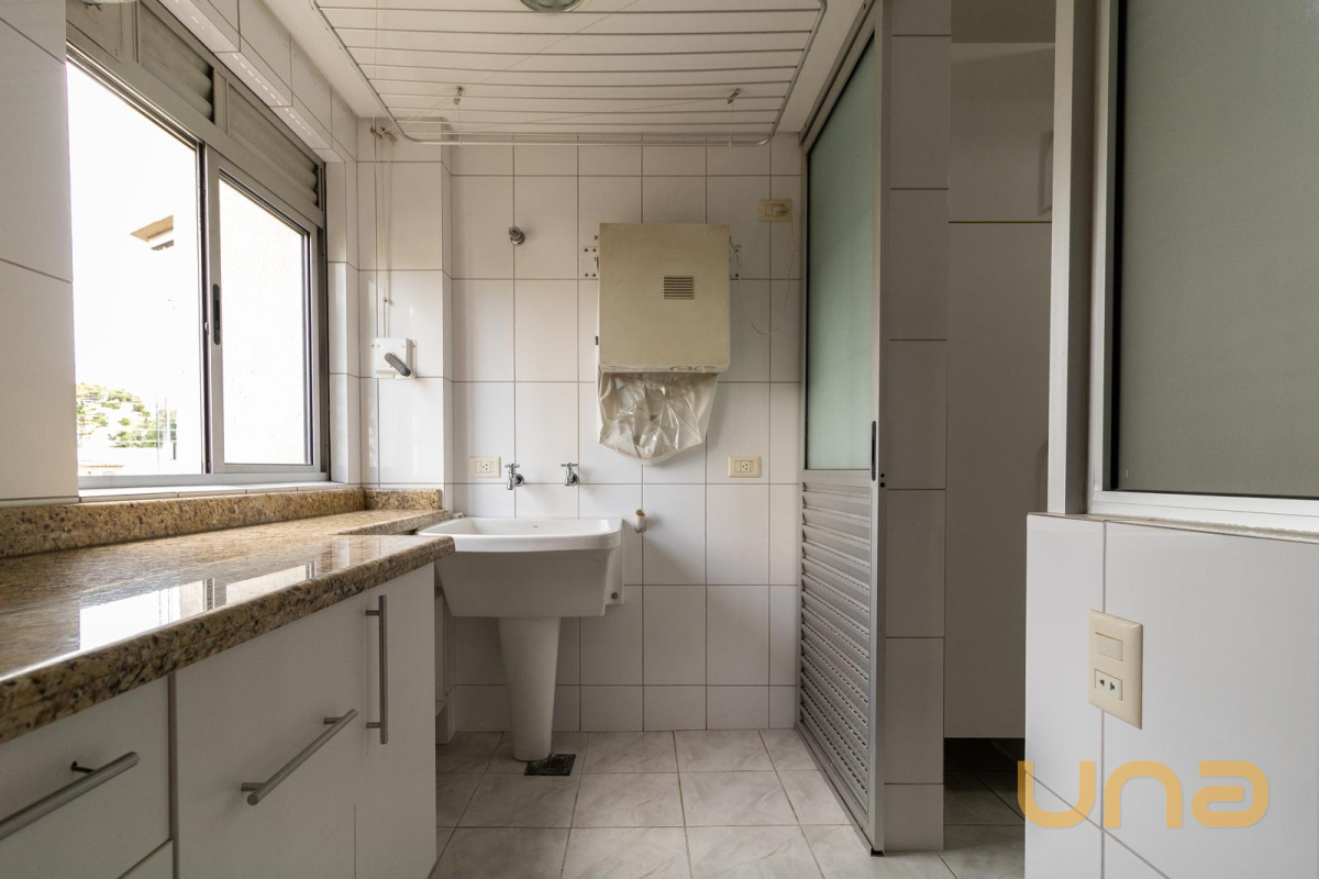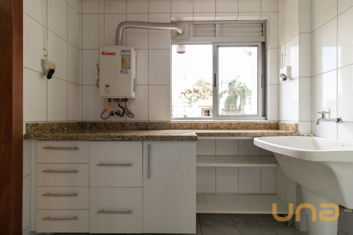 Área de serviço funcional, equipada com armários, tanque e sistema de gás central, trazendo mais praticidade ao dia a dia.