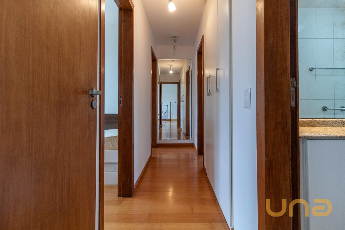Corredor com armários planejados, otimizando o aproveitamento dos espaços.