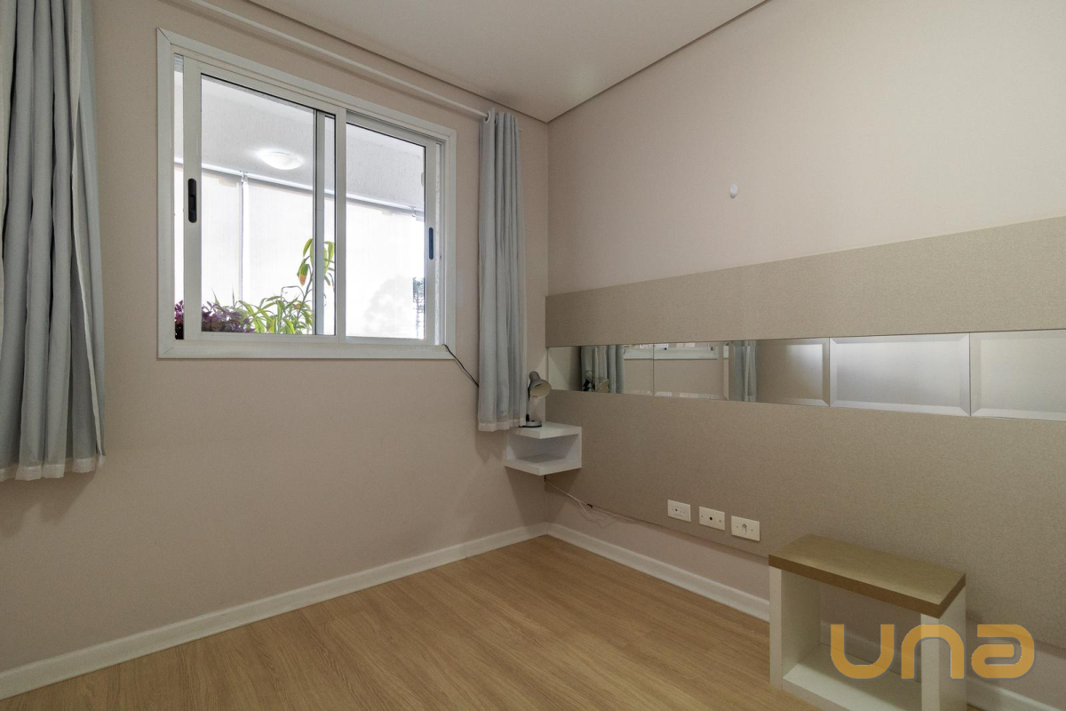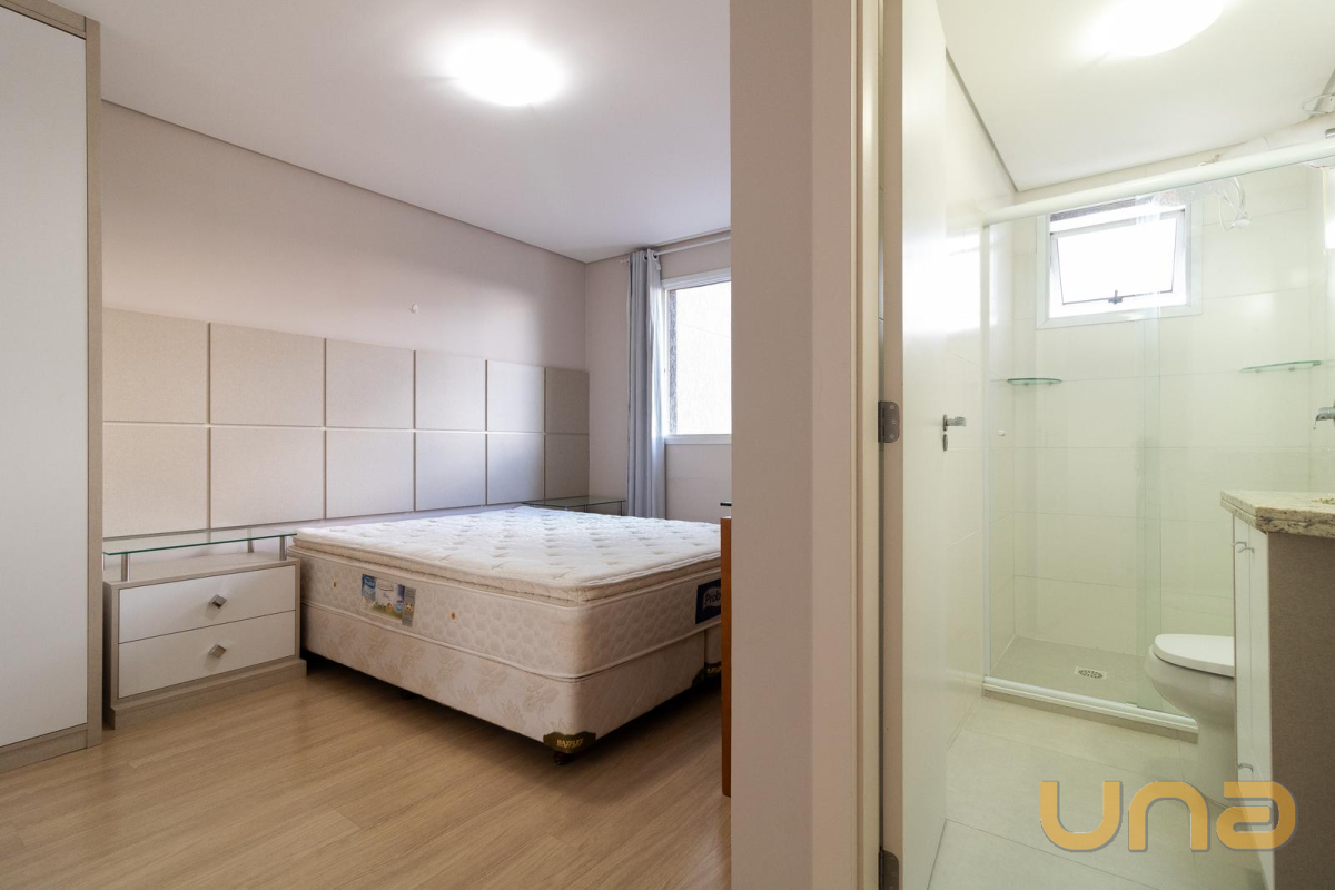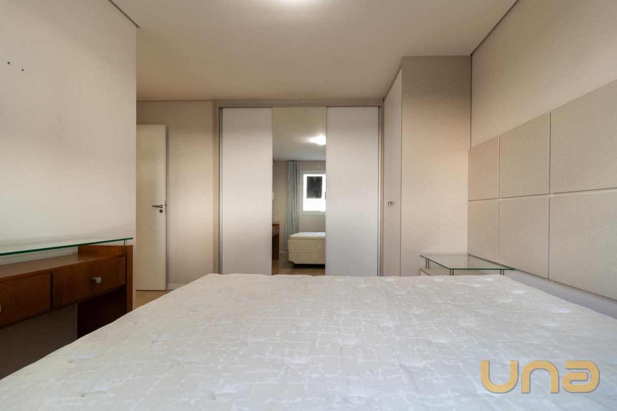 * Dois quartos, sendo uma suíte com cama box de casal nova, cabeceira, armário planejado, aparador com gavetas, cortinas e luminárias. O segundo dormitório conta com armário, cabeceira e criado-mudo.