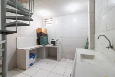 Cozinha funcional, equipada com pia e balcão – espaço ideal para refeições rápidas e suporte operacional.