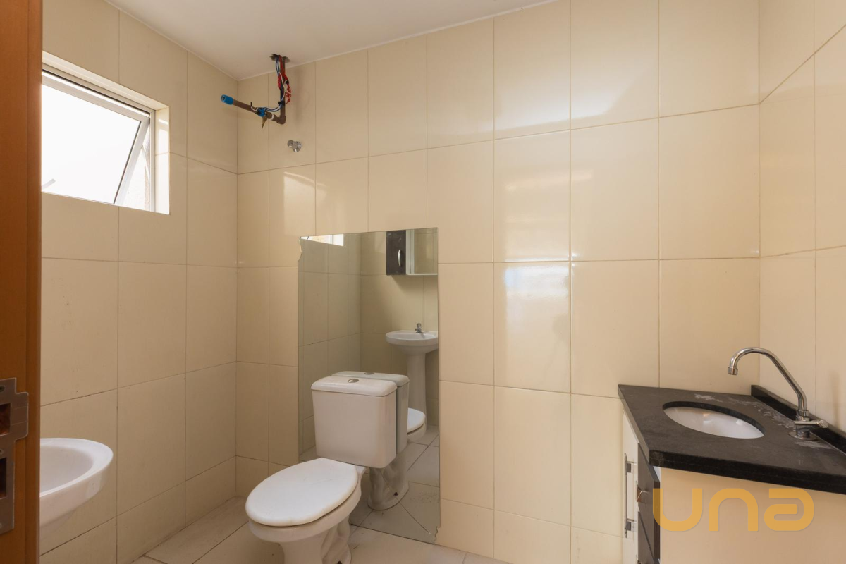 02 Banheiros equipados com vaso, pia, armário e espelho.