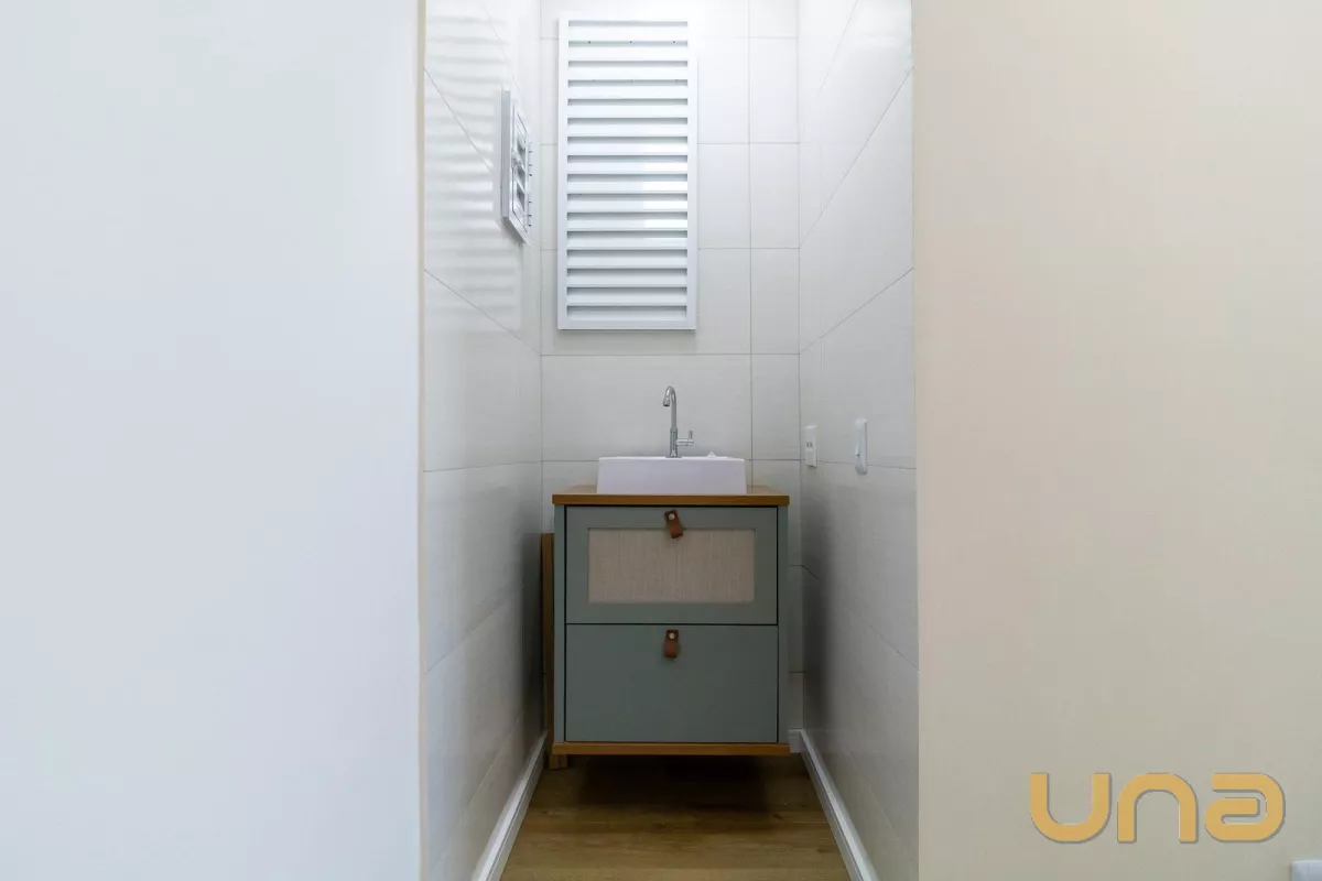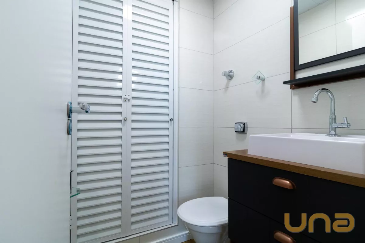 Banheiro privativo – equipado com vaso, pia e armário, agregando conforto ao ambiente profissional