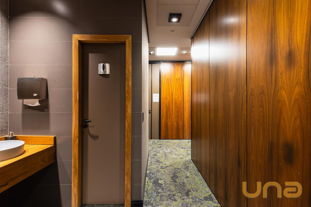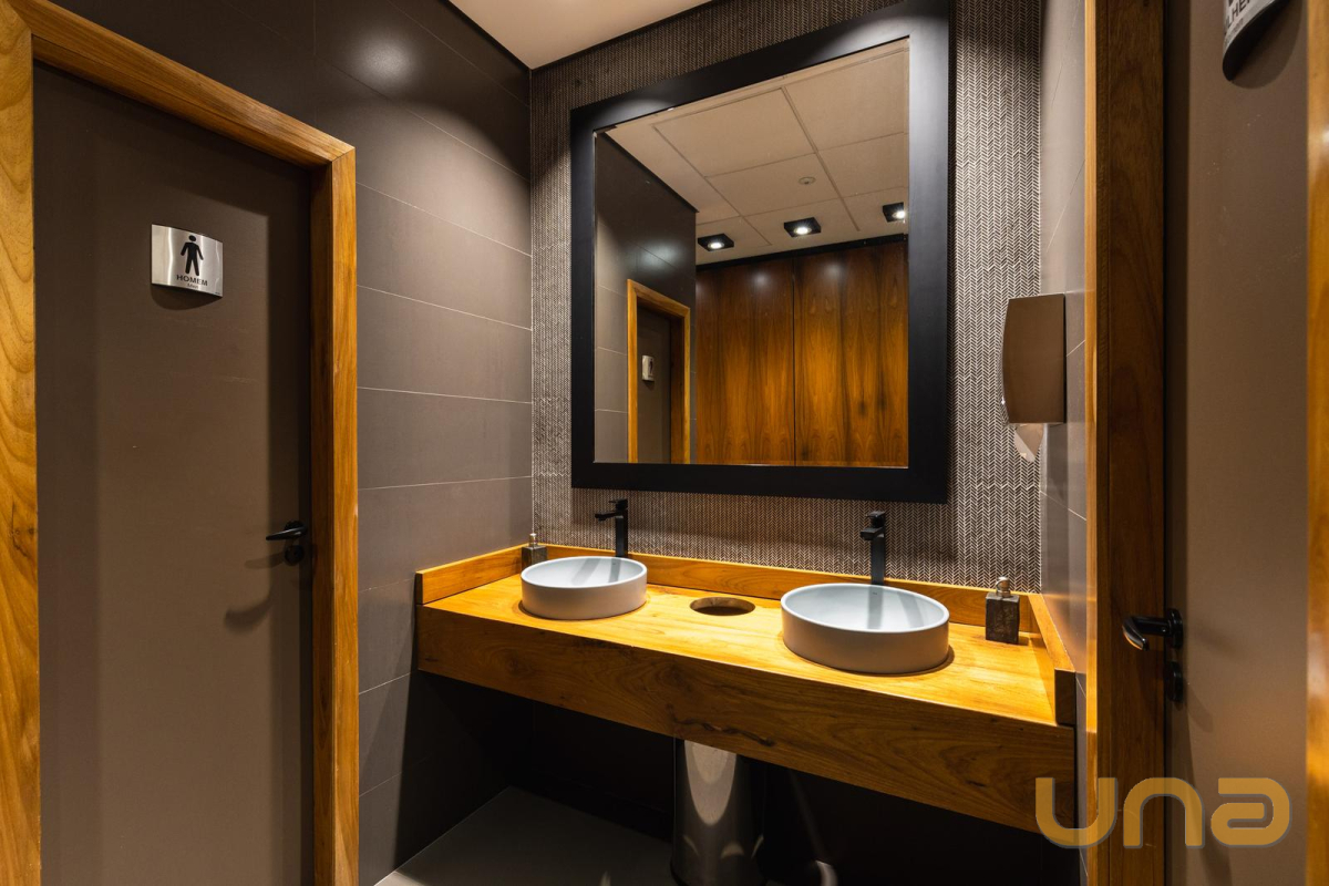 15 Banheiros ao total, divididos entre masculino e feminino.