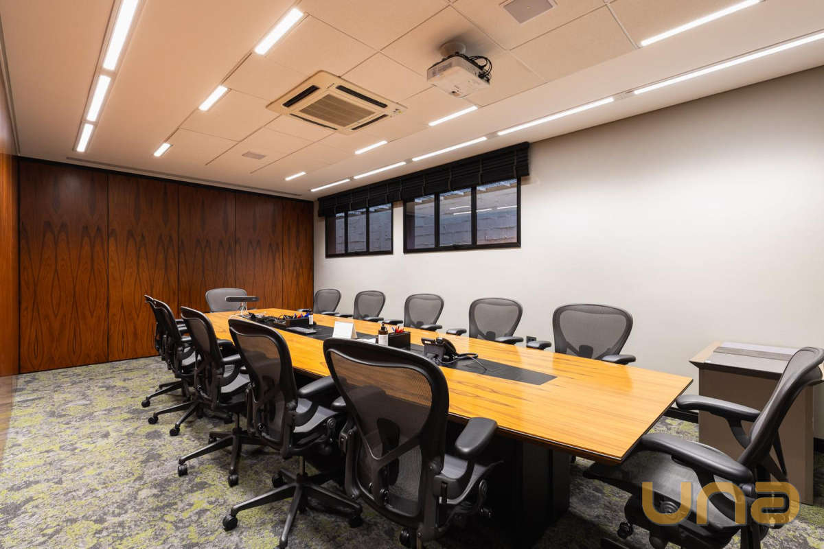 6 salas de reuniões independentes.