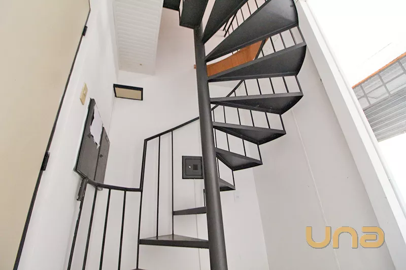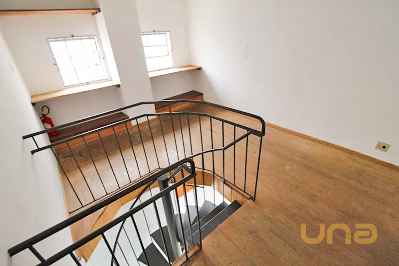 Loja em galeria; Sala ampla com divisórias, balcão, piso em cerâmica, mezanino, porta de vidro; Banheiro.