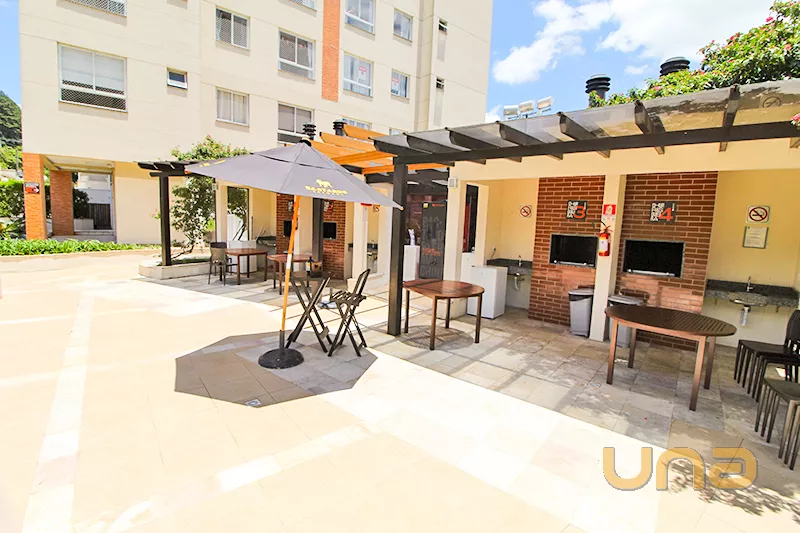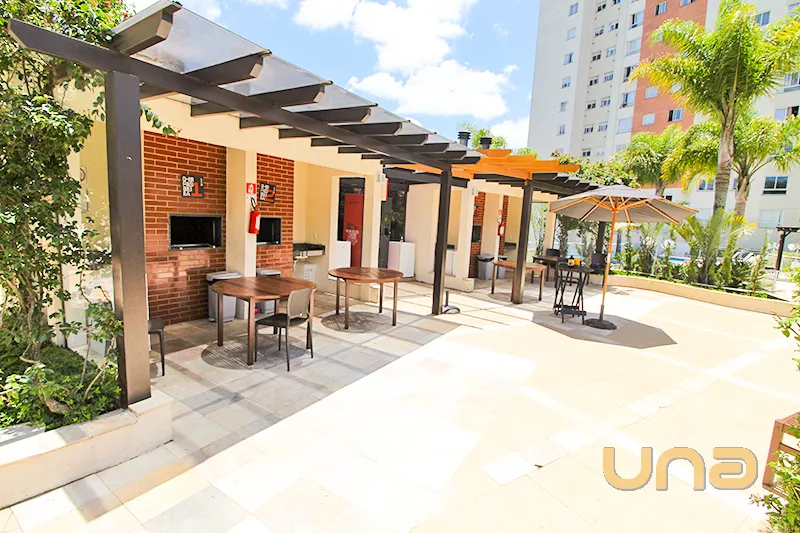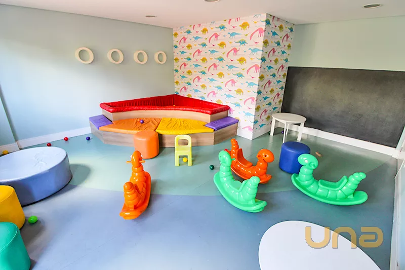 Condomínio com salão de festas, playground, quiosque com churrasqueira, piscina, cancha.