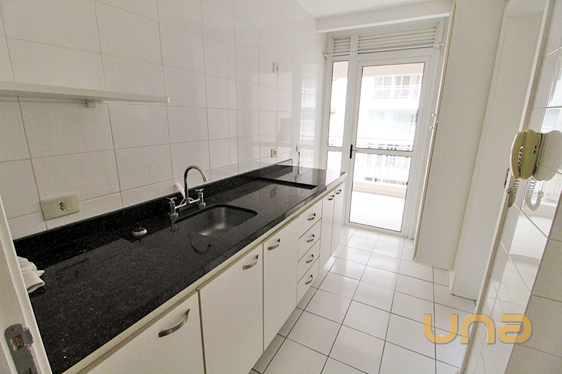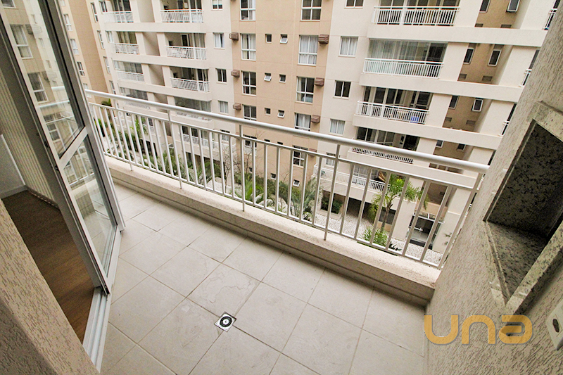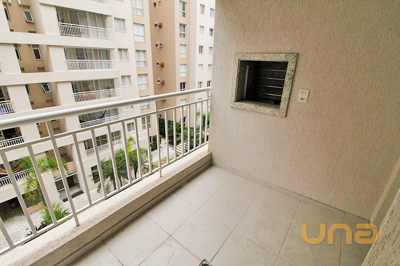 Apartamento de 2 quartos com armário; Sala para 2 ambientes com sacada e churrasqueira; Banheiro com box tipo blindex; Cozinha com armários e pia; Área de serviço; Vaga de garagem coberta.