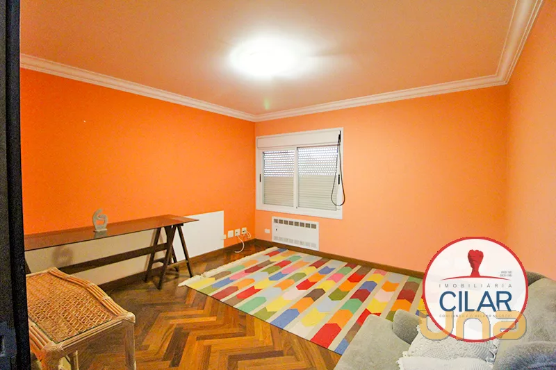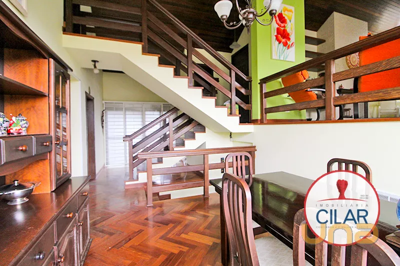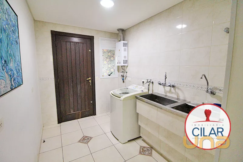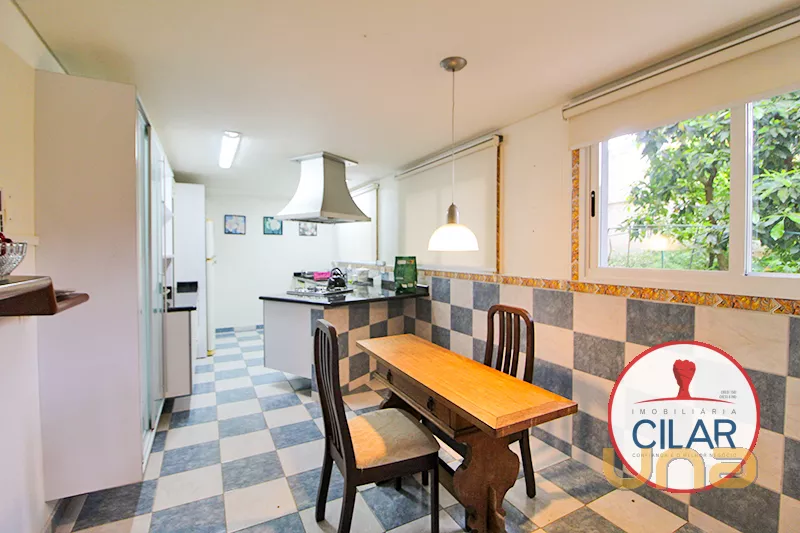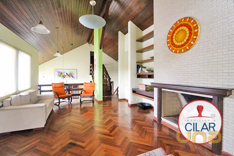Ambientes: Sala de jantar, sala íntima com lareira, cozinha com ilha, lavanderia e despensa.