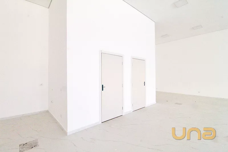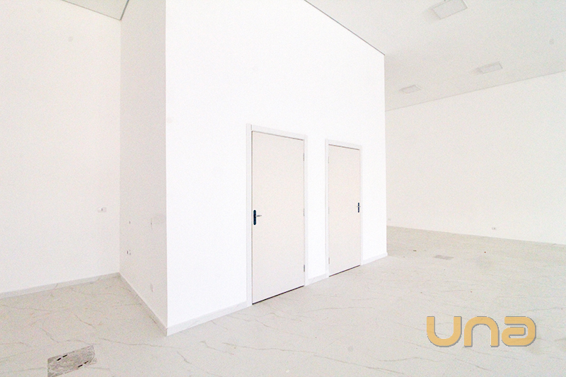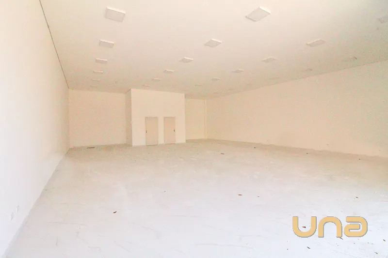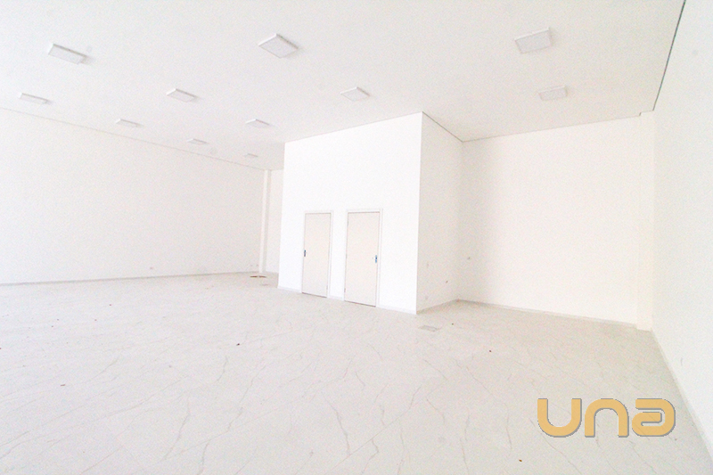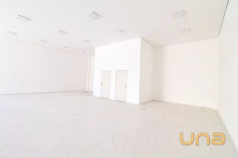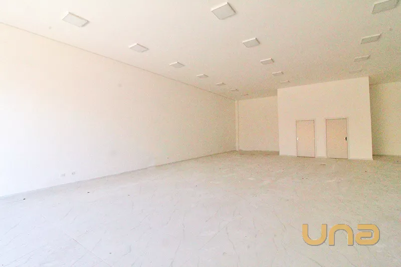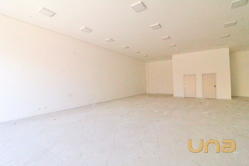 Loja com 200m², pé direito duplo e cinco vagas de estacionamento.