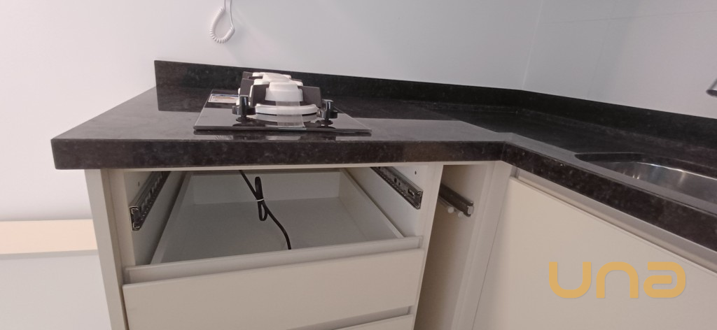 Excelente Apartamento -kitinete contendo quarto com guarda roupa planejado, banheiro com pia armarinho e box em vidro, salas com painel conjugada com a cozinha com armários planejados pia em granito com coocktop.